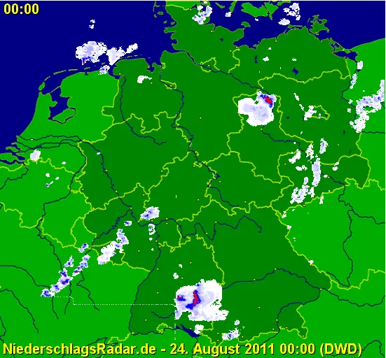 GFS NCEP: 00Z vom 23.08. will ebenfalls den großen Otto über der Ostsee/Polen, zeigt aber auch mehr konvektive Signale am Alpenrand, Bayrischer Wald und Erzgebirge sowie SO-Thüringen:![]()