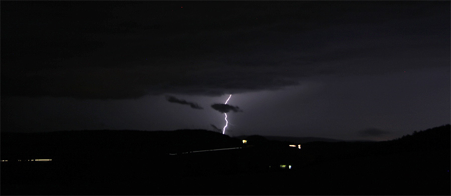 Was uns faszinierte, war die Stimmung nach Abzug der Gewitter. Der Himmel klarte auf wie nach einer Kaltfront, ABER, es war nicht kühler geworden. Es war angenehm warm und der Sternenhimmel war schnell wieder sichtbar. Mit den durchrauschenden Wolken eine wunderbare Stimmung. Dazu gesellte sich Richtung Süden neues "Geflacker" von neu gebildeten Zellen, die durch Mittelthüringen zogen. Bis ich aber auf meinem Heimweg in Reichweite war, hat die Aktivität nachgelassen und weiter ostwärts wollte ich nicht mehr, da langsam die Müdigkeit einsetzte....