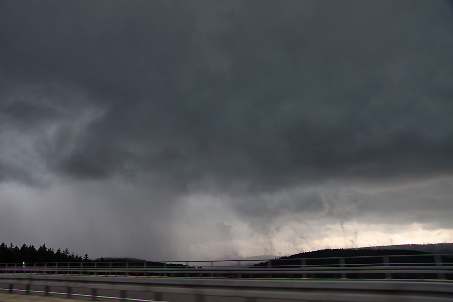 Vorlaufend entwickelten sich bei Gotha und Erfurt neue Zellen, die zwar später gewttrig wurden, aber nicht mein Ziel waren. Ich wollte die Zellen der Kaltfront entweder bei Ilmenau oder Suhl abfangen, da diese beständiger waren. In Ilmenau zum Lagecheck ein Rast an der bekannten Stelle..