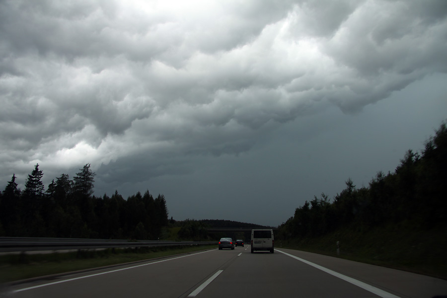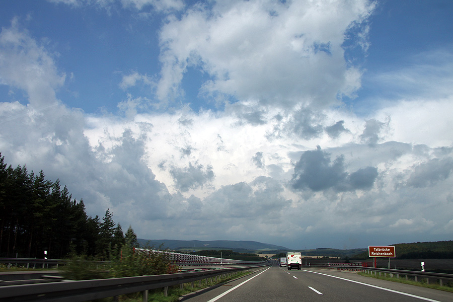 In heftigem Starkregen, die Sicht war wirklich enorm herabgesetzt, drehte ich in Meiningen wieder zur Rückfahrt. Unter solchen Bedingungen Autobahn zu fahren, gefällt mir gar nicht, denn die Garantie, dass es kracht, gibt es immer und sie wurde auch mehrmals an diesem Tag (zum Glück nur mit Blechschäden) bestätigt..