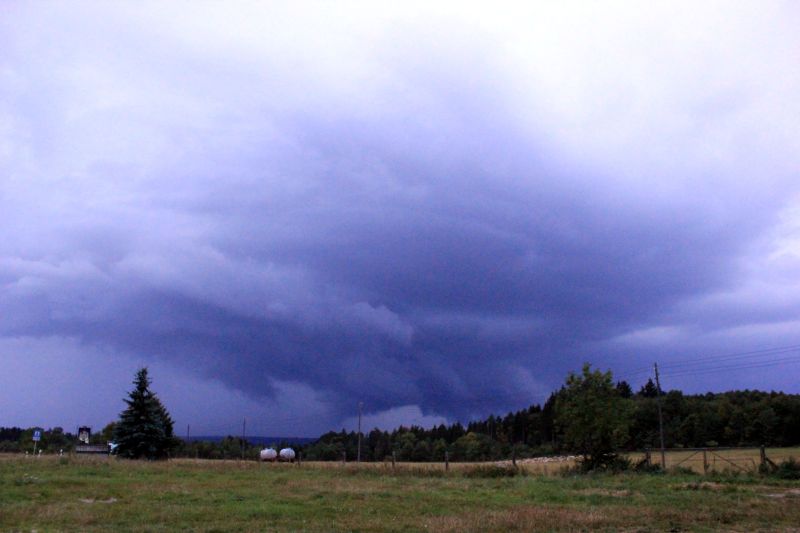 Natürlich erwartete ich, dass die Zelle, die von Südwesten auf Sondershausen zuzog sich bald auflösen würde. Ich platzierte mich also wie gewohnt an der Schernberger Holzecke mit recht gutem Ausblick nach Südwesten und wollte die restlichen Blitze begutachten - so dachte ich. Wie üblich war es größtenteils wieder nur das Geflackere in den Wolken, was sich später auch nicht wesentlich änderte [...] Im Nu hörte man das Gedonnere, der Wind wehte leise durch das dunkle Geäst an jener Ecke, sodass der Gruselfaktor stieg. Im Süden / Südwesten konnte man vom Geflacker erhellt schließlich einen Niederschlagsvorhang sehen. Doch auch über mir begann schon das Getröpfel, das sich allmählich verstärkte. Alsbald durfte der Regen die Bezeichnung "Starkregen" führen. [...]