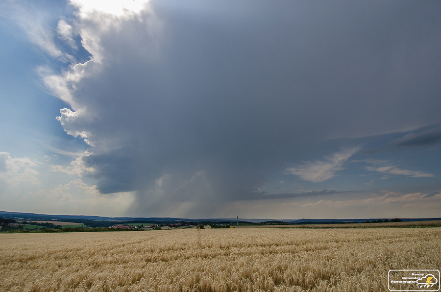 Am frühen Nachmittag entwickelte sich eine erste Gewitterzelle bei Jena, die mit kleinem Hagel und ein paar Sturmböen einher ging. Leider war ich zu dieser Zeit noch auf Arbeit und durfte das Schauspiel von dort aus beobachten. Dieser Zelle ging aber schnell die Puste aus.