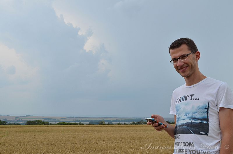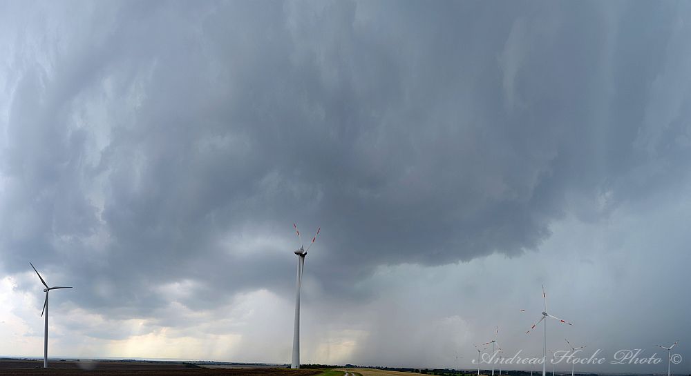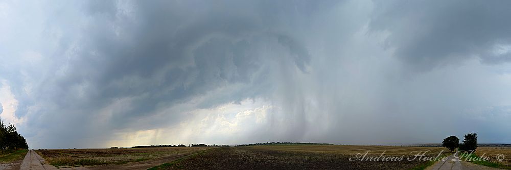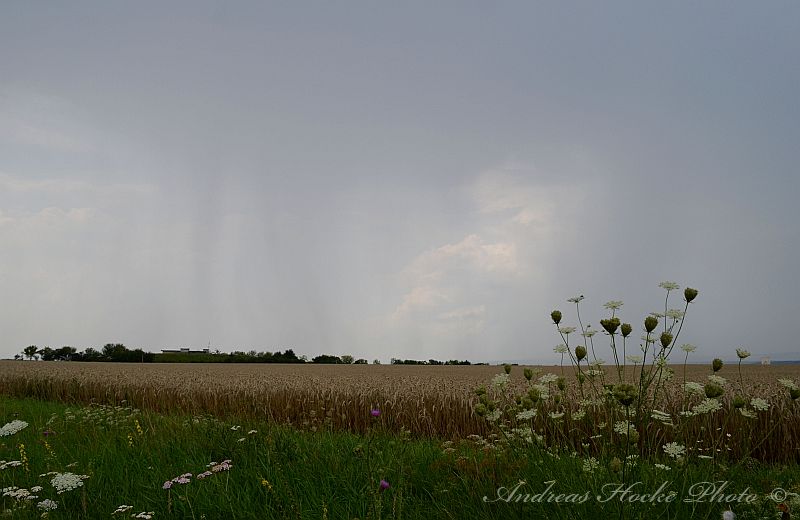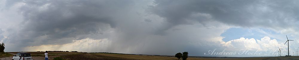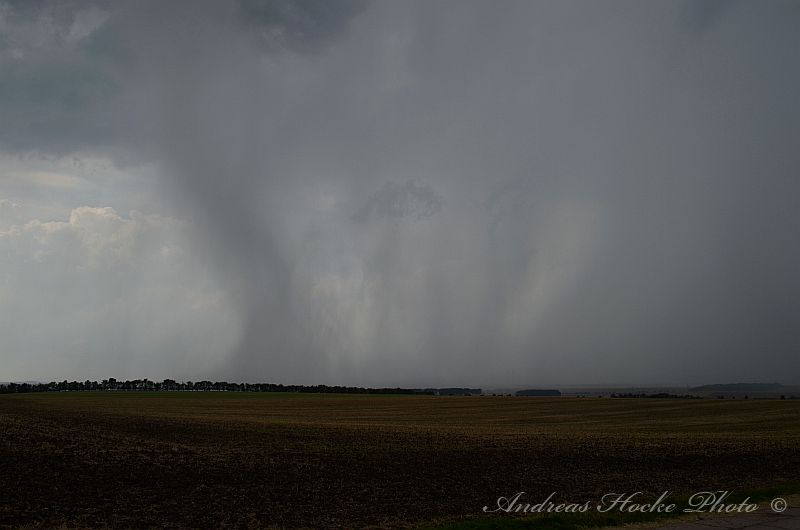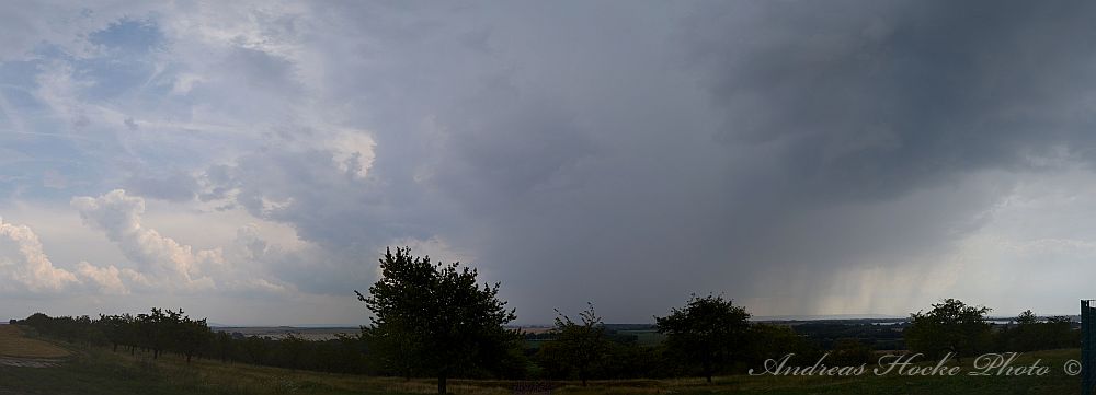 Wie ja allen bekannt war, gab es heute fast überall Gewitter in Thüringen. Dies deutete sich schon heute Morgen an, als ich mit meiner Familie noch im Freibad war und gegen 10.30 Uhr sah, wie die ersten Türmchen hoch gingen. Gegen 13.00 Uhr wurde es in Richtung Nordwest ziemlich dunkel. Die Ruhe hatte ich noch weg und blieb sitzen bis es ca. 14.00 Uhr anfing zu donnern. Der Wind blies ordentlich und ich packte die Sachen mit meiner Familie zusammen. Zelle 1 war weg, und ich ging nach Hause und fuhr raus. Danach legte Zelle 2 los. Das Teil hat ordentlich mit Hagel um sich geworfen (2-3 cm Korngröße). Leider habe ich nur ein Bild, denn es war ziemlich heftiger Hagel. Ich schloss mich mit Markus kurz und ich verlagerte meinen Standort nahe Weißensee. Dort konnten wir sehr schön sehen wie sich eine Zelle nach der Anderen immer weiter südlich bildete. Uns erreichtenn kräftige Outflow-Böen. Aber nu zu den Bildern: