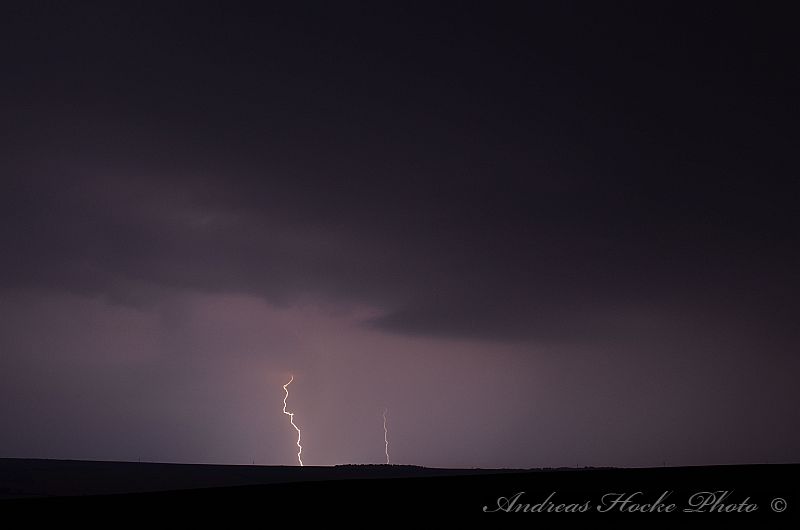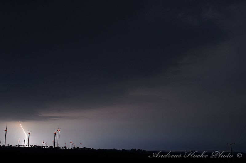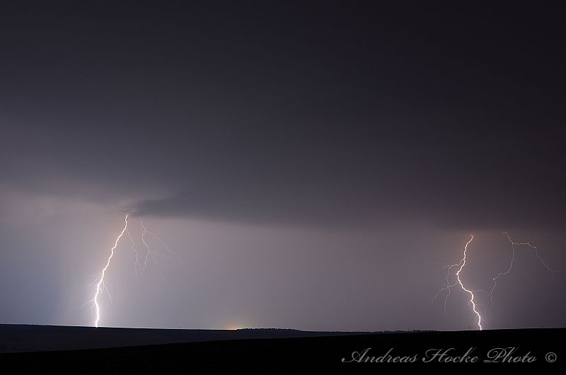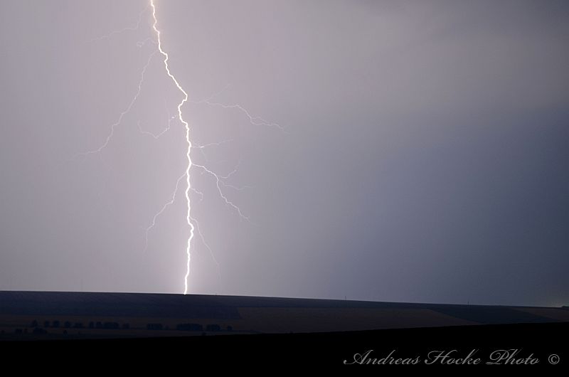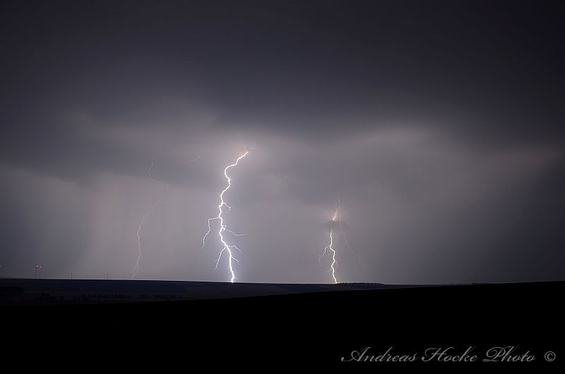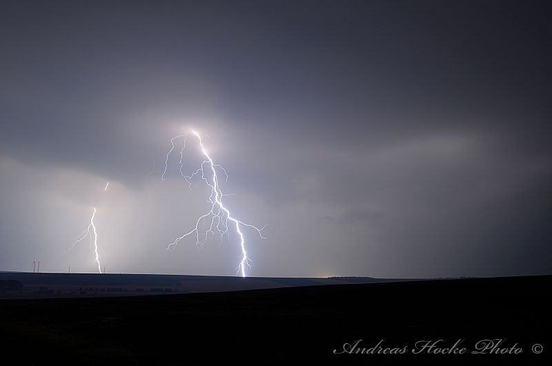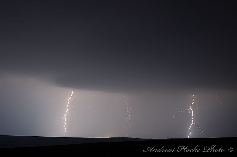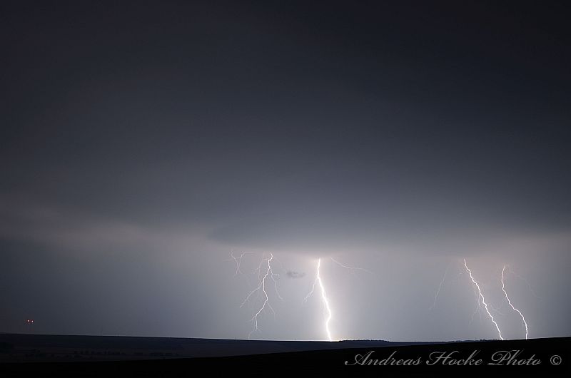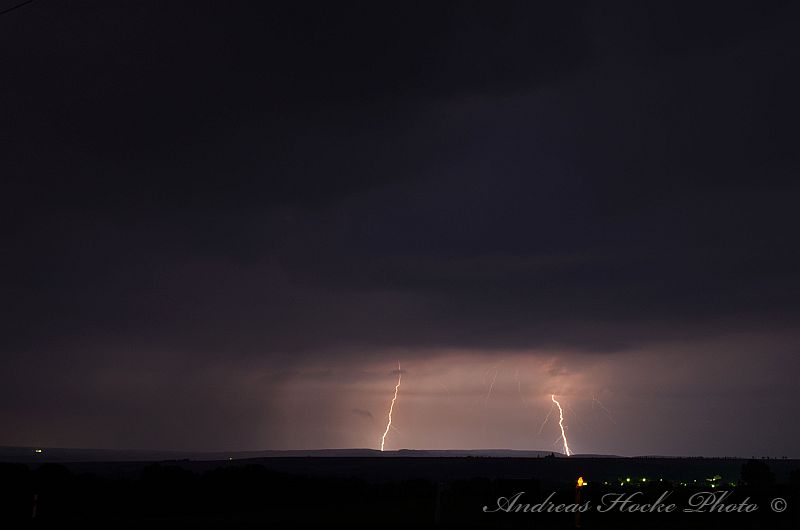 Als ich gegen 23.30 Uhr Feierabend in Kölleda machte, sah ich schon den ein oder anderen Blitz am Himmel. Ich warf einen Blick aufs Radar und musste feststellen welch Monster. Auch die Blitzrate war ziemlich hoch. Ich fuhr zu einem meiner Aussichtspunkte, nahe Ottenhausen dort flackerte es am Anfang nur. Jedoch legte die ein oder andere Zelle ordentlich zu, sodass die Blitzrate stieg und die Blitze näher kamen. Der ein oder andere Naheinschlag war da schon dabei. Das größere Problem stellte sich eher in der Ausrichtung der Kamera dar, denn es Blitze von Sömmerda über Erfurt bis hin zur Hainleite. Ich entschloss spontan mal hier und dahin zu halten. Deswegen nur eine kleine Auswahl meiner Bilder.