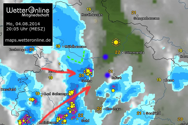 Ein Blick aufs Radar verriet, das eine Zelle die in Hessen entstand, sich auf den Weg Richtung Erfurt machte...also Kamerarucksack geschnappt und los ging es.