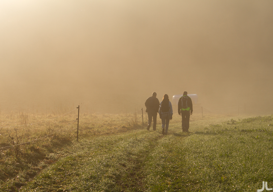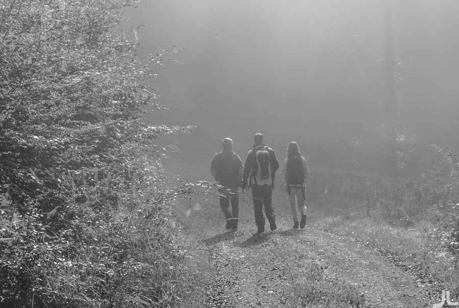 Der erste Anstieg aus dem Nebel mit unserer Wandertruppe