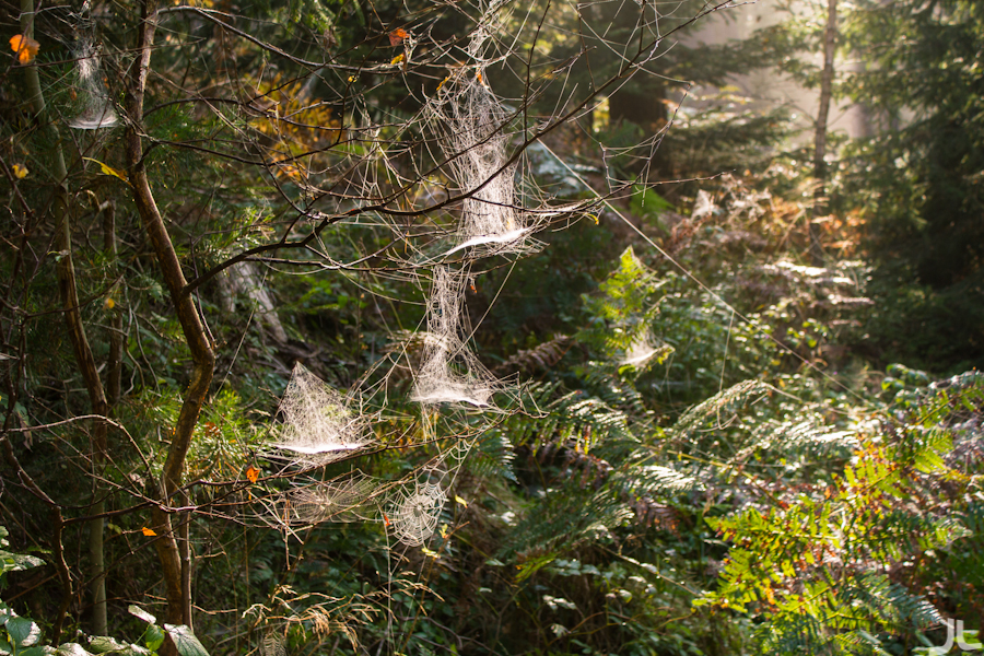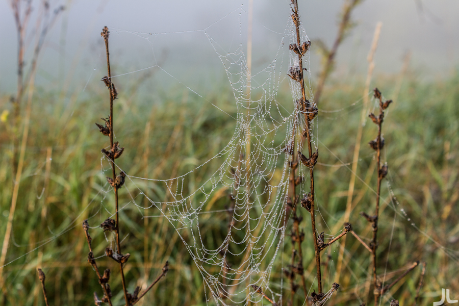 In dem Nebel sind die Spinnennetze herlich zur Geltung gekommen.