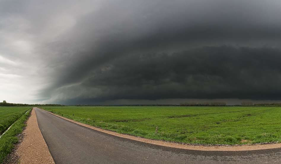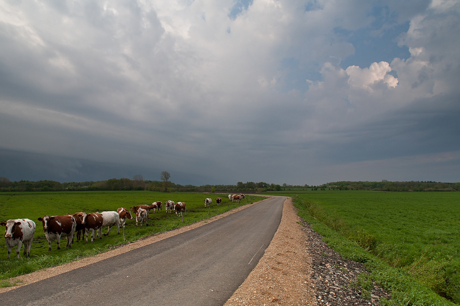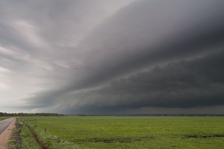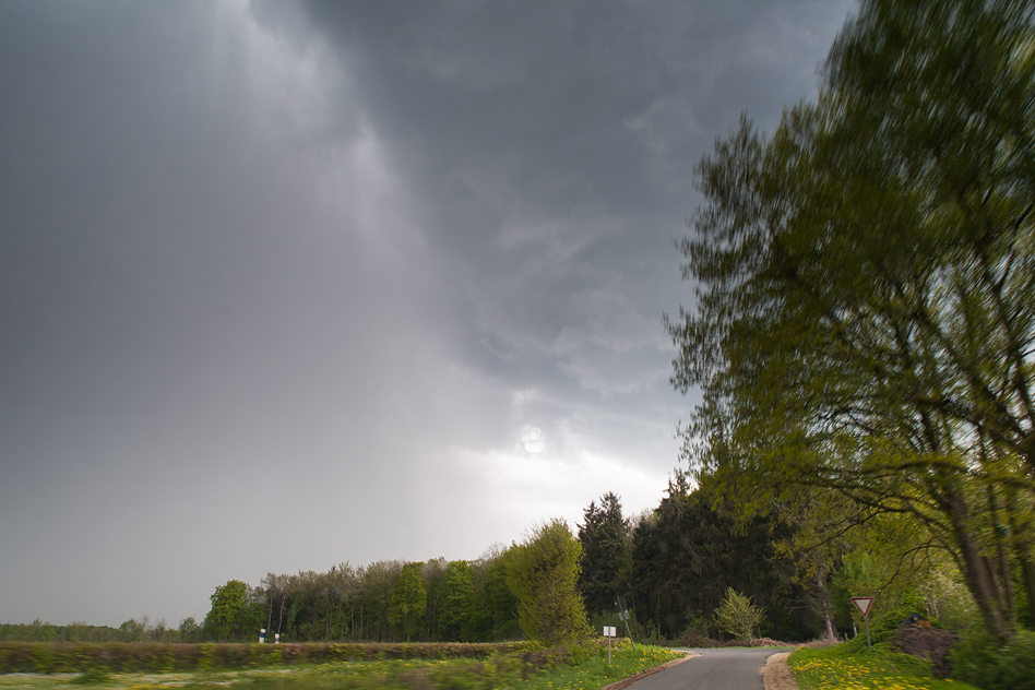 Danach war erst einmal Pause. Wir positionierten uns etwas südlich von Grüntal (NOK) und blickten gen Süden auf den heranziehenden MCS. Da in der Gegend praktisch jedes Feld von Alleen umrandet ist, kann man kaum Einblick in die Landschaft halten. Hier verloren wir die Hagelzelle aus dem Blick und konzentrierten uns auf den Komplex im Süden: