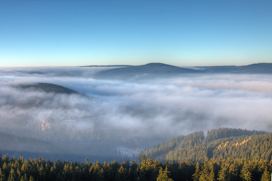 Sdthüringen war bereits unter dem Nebel verschwunden, nur einige Gipfel blickten in diesen traumhaften Spätherbstmorgen: