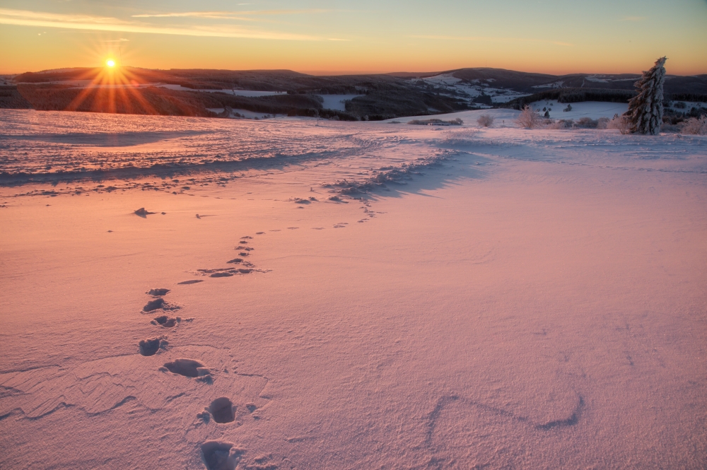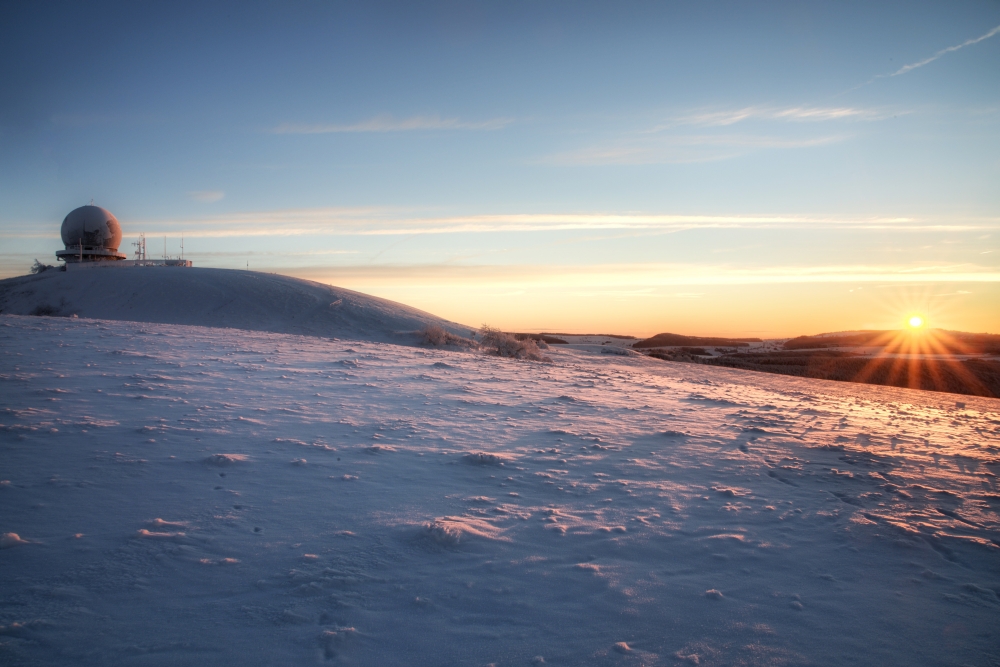 Die Sonne schickte die ersten Strahlen auf die Wasserkuppe: