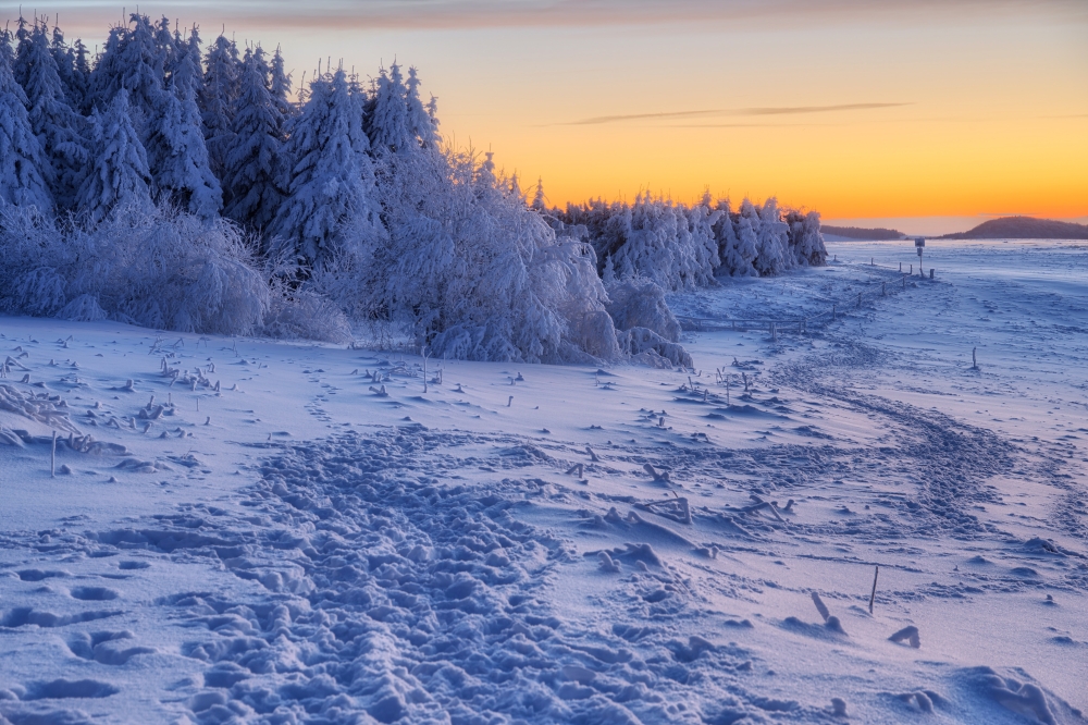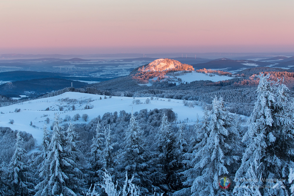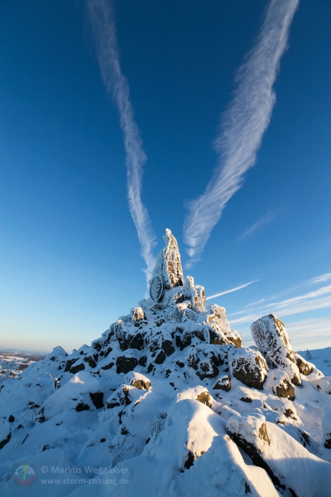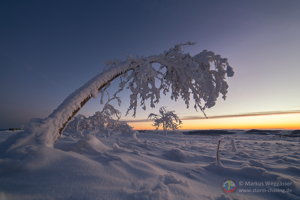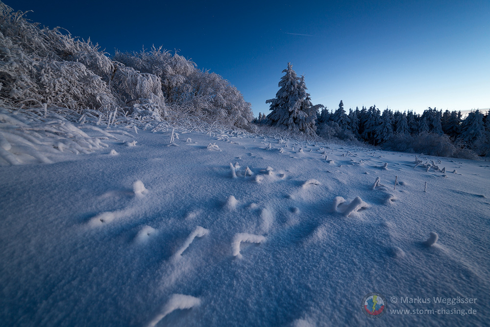 Die weniger gewordenen Wintermomente sollte man zeitnah nutzen wenn es geht. Zur Wochenmitte zeichnete sich eine kurze Phase für schöne Wintermotive für Freitag (heute) und teils noch Samstag ab, die ich, Marco und Ronny für einen Ausflug nutzten. Wir besprachen die Tourplanung am Vorabend und entschieden uns für die Rhön, genauer Wasserkuppe. Die Webcams der höchsten Gipfel zeigten am Vortag durch die aufliegenden Wolken schön bereifte Bäume in der Landschaft oberhalb 900m, das wollten wir gern ausnutzen. Der Plan sollte aufgehen...