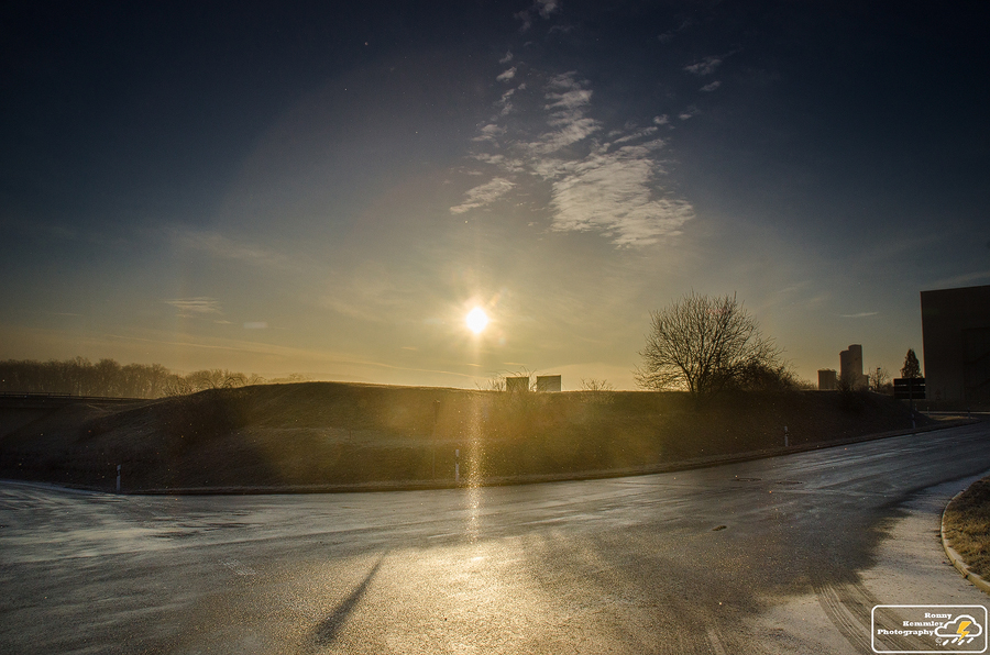 Nach massig Fotos packte ich meine Sachen zusammen und fuhr wieder Richtung Jena. Im Gewerbgebiet Maua gab es noch ein bisschen Eisnebel zu bewundern. Alles klitzerte vom Himmel