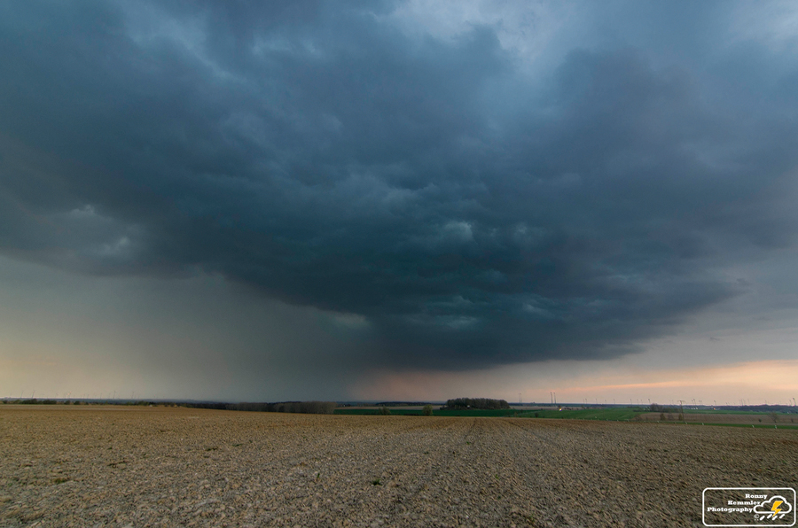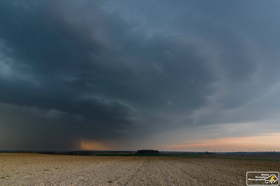 Los ging es am Nachmittag Richtung Erfurt. Dort stand eine frisch entstandene Gewitterzelle für mich bereit. Ich fing diese bei Erfurt-Bindersleben ab. Sie bildete einen schönen abgegrenzten Abwindbereich aus. Immer wieder war Donnergrollen hörbar und der Anblick dieser Zelle verlangte nach mehr.