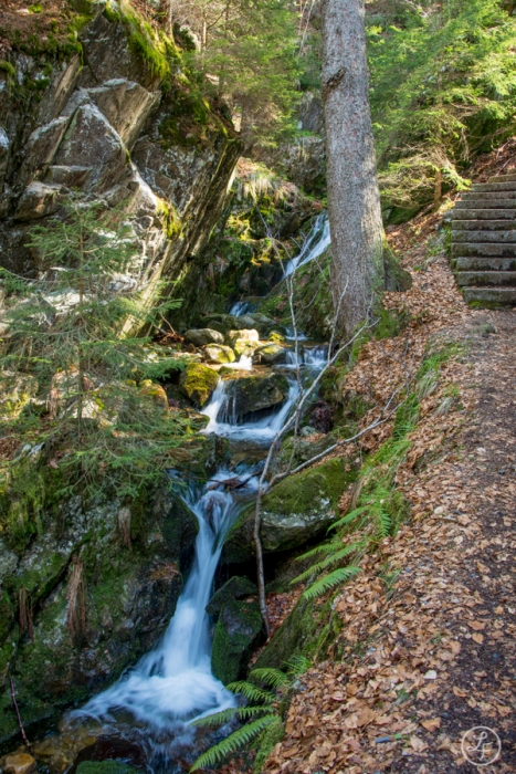 Am Sonntag nahmen wir uns den Wasserfallsteig vor. Dieser verbindet den Feldberg und den Todtnauer Wasserfall auf einer Strecke von ca. 13km miteinander und verbindet mehrere Schluchten und Wasserfälle miteinander. Schon letztes Jahr über Ostern wollten wir diesen Weg erwandern, bei der Ankunft auf dem Feldberg mussten wir dieses Vorhaben aber schnell fallen lassen, da noch so viel Schnee lag, dass ein Teil der Wanderstrecke sogar noch als Skipiste in Funktion war.