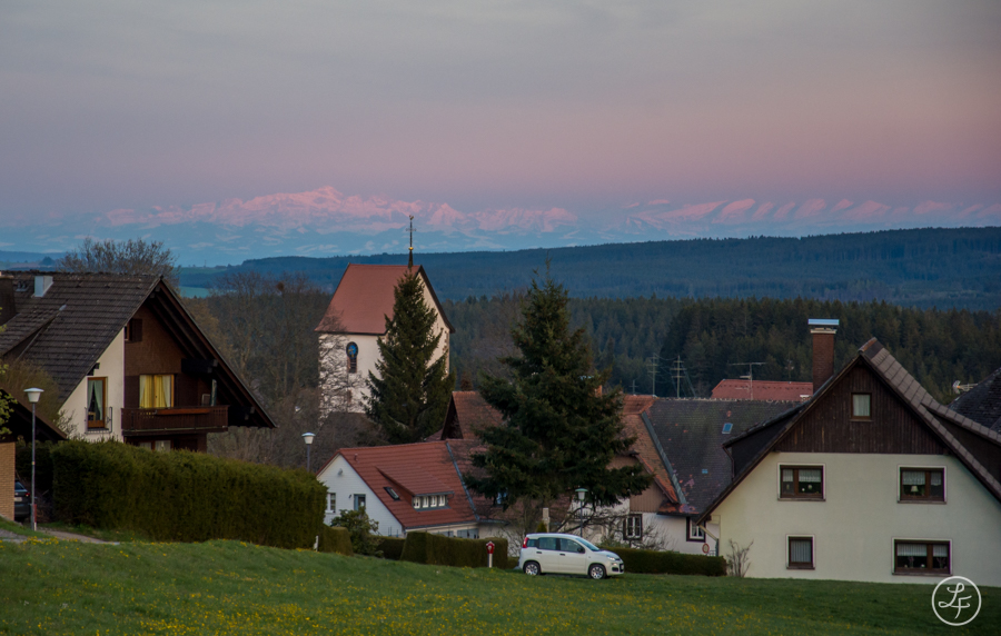 Am Abend machten wir noch einen kleinen Spaziergang um das Dorf Saig, in dem unsere Unterkunft lag. Immer noch waren die Alpen sichtbar und wir konnten noch die letzten Minuten des fernen Alpenglühens genießen, ein kleiner Vorgeschmack auf unseren baldigen Alpenurlaub...
