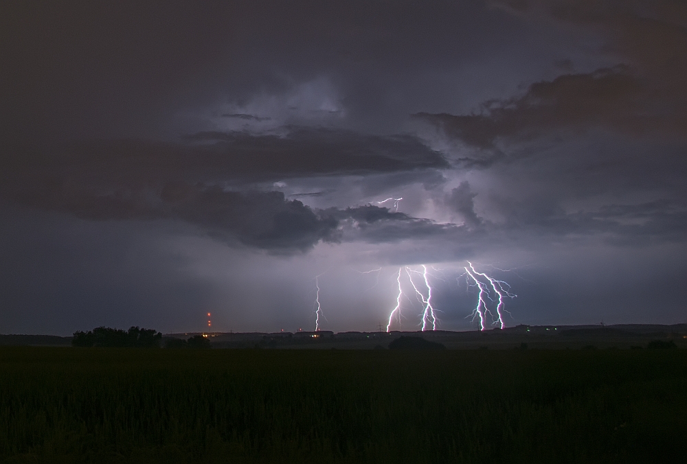 Anschließend wollte ich noch einmal vor den ganzen Regen, was mich bis nach Schmölln brachte. Dort verbrachte ich dann den Rest der Nacht bei immer wieder von Gewittern durchsetzten Niederschlägen und konnte noch den ein oder anderen Blitz ablichten. Im Nachhinein hätte ich wahrscheinlich noch ein wenig in Arnstadt bleiben sollen, aber naja. Es war trotzdem wieder schön, die Nacht gemeinsam mit dumpfem Donnergrollen zu verbringen und anschließend todmüde Richtung Arbeit zu fahren.....es ist halt eine Leidenschaft, die manchmal körperliche Leiden schafft ![]()