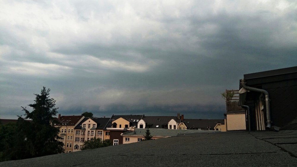 Als ich auf die Front gewartet habe, bekam ich von einer Bekannten ein Bild von der Böenfront über Chemnitz zugeschickt: