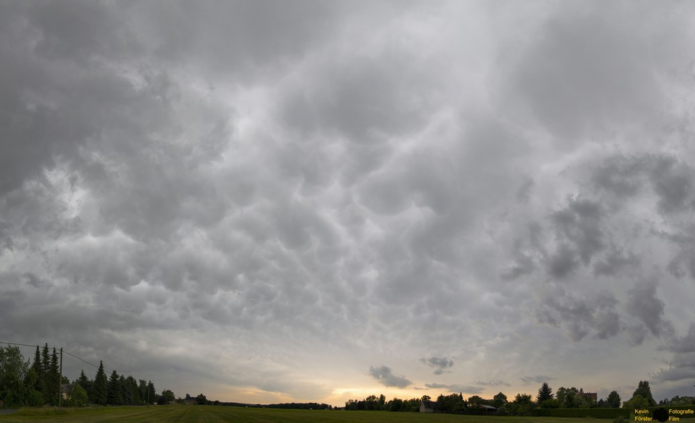 Pünktlich 18:52Uhr ging es zurück Richtung Chemnitz. Soweit kam ich dann aber nicht. Das Radar verfolgend war mir klar, dass ich es bis zur Ankunft der Gewitterzelle in Chemnitz nicht schaffen würde. Also plante ich in Freiberg auszusteigen. Kurz vor Freiberg kam im Zug auch die Durchsage, dass eine Weiterfahrt nach Chemnitz aufgrund von Unwetterschäden nicht möglich ist. Also fix auf die Karte geguckt, wo in/um Freiberg ein guter Standort wäre und los ging es. Unterwegs zeigten sich schöne Mammati: