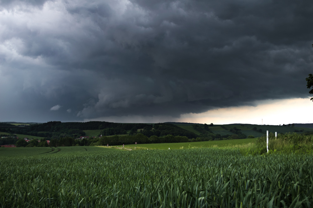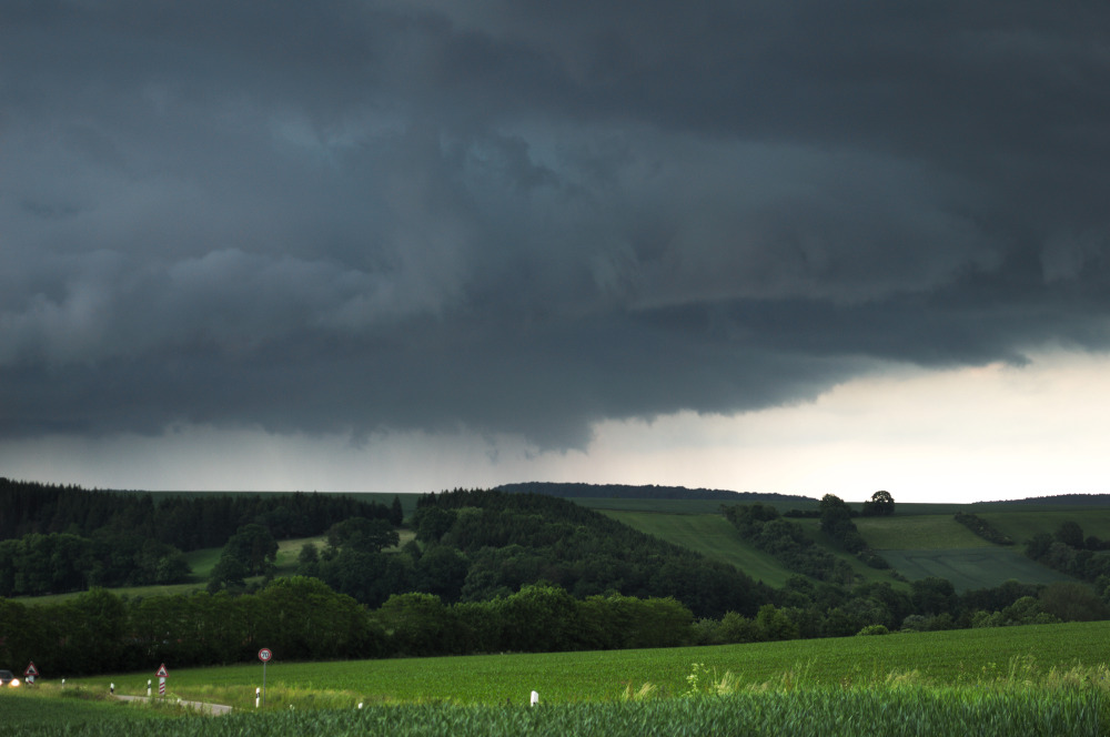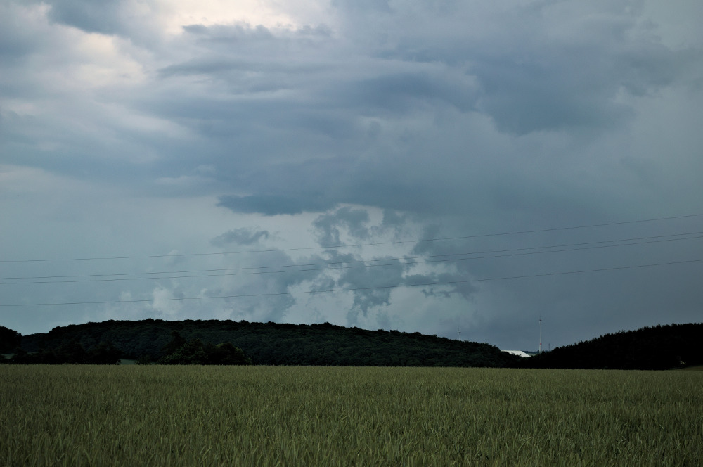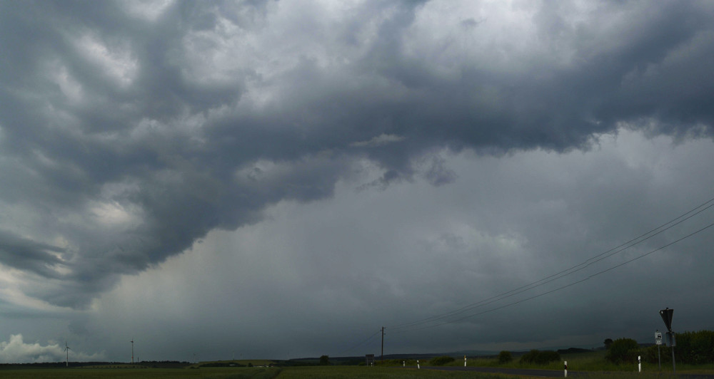 Da es recht schnell "verclustert" und der Aufwindbereich im Regen verschwand, hab ich die Zelle ziehen lassen und bin nochmal an unseren Hauptchasingpoint an der A38 (Scheune) gefahren um mir die Rückseite anzuschauen.