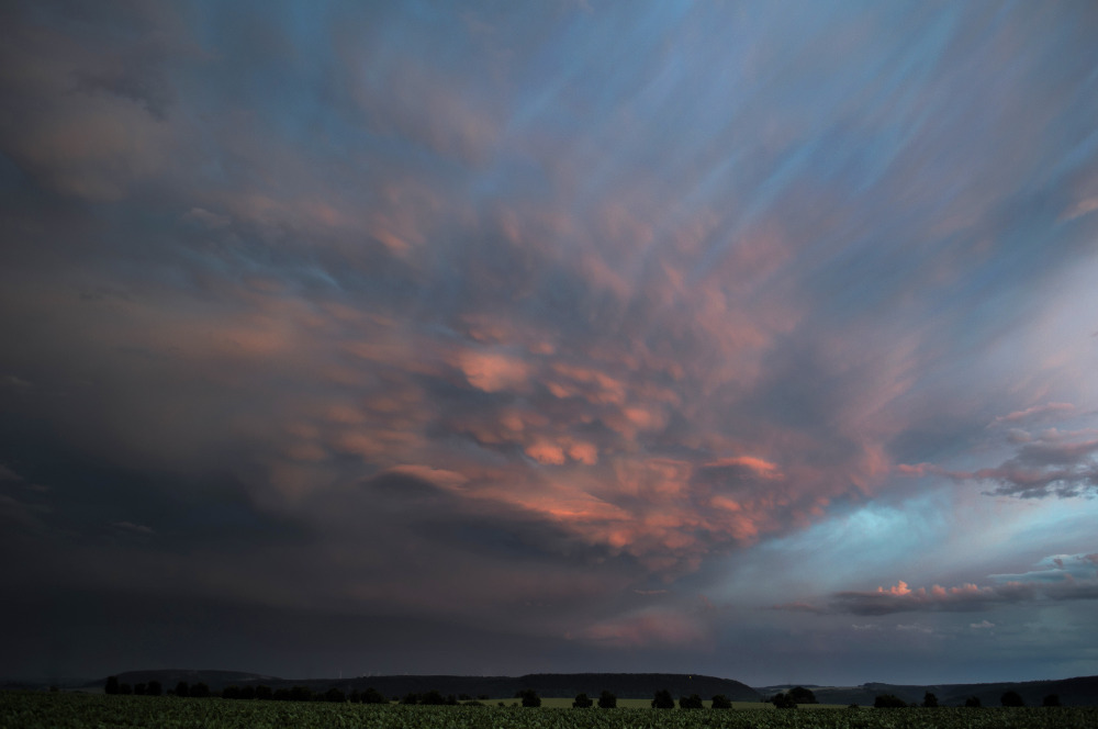 Ich wollte es noch wissen und fuhr auf der A38 Richtung Osten, was aber letztendlich ein halber Reinfall war. Es verclusterte zusehends bzw. schwächte sich auch ab. Somit fuhr ich Leinefelde wieder ab und kehrte um. Auf dem Weg nach Hig sah man langsam wieder die untergehende Sonne am Horizont herrausblitzen. Da war mir klar, dass es sicherlich hervorragende "Mammati-Abendlicht-Stimmung" geben wird. Und es hat sich zu 100 Prozent bestätigt.