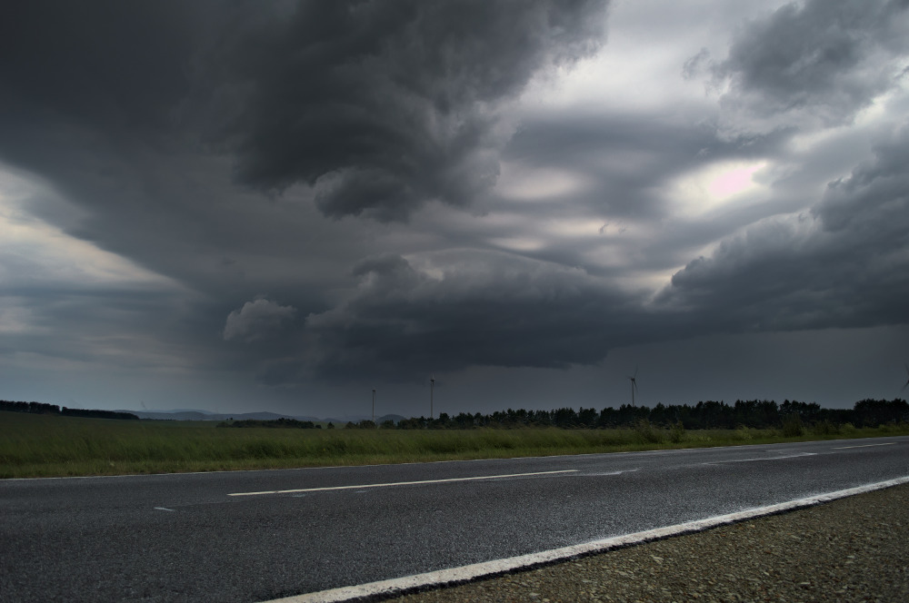 am besagten Tag konnte ich eine schöne, recht intensive Zelle bei Göttingen auf dem Radar erkennen. Also ging es kurzum los nach Göttingen. Ich wusste sofort welchen Chasingpoint ich ansteuern musste und kam genau zur rechten Zeit dort an. Allerdings bin ich Landstraße gefahren, da ich gerade die Feuerwehr ausrücken hörte als ich mir an der A38 (Scheune) einen ersten Überblick verschaffte.