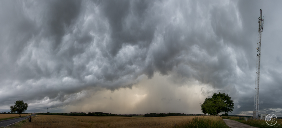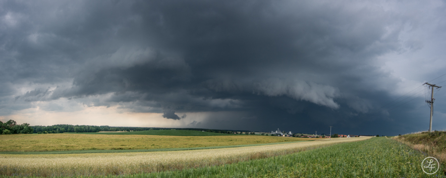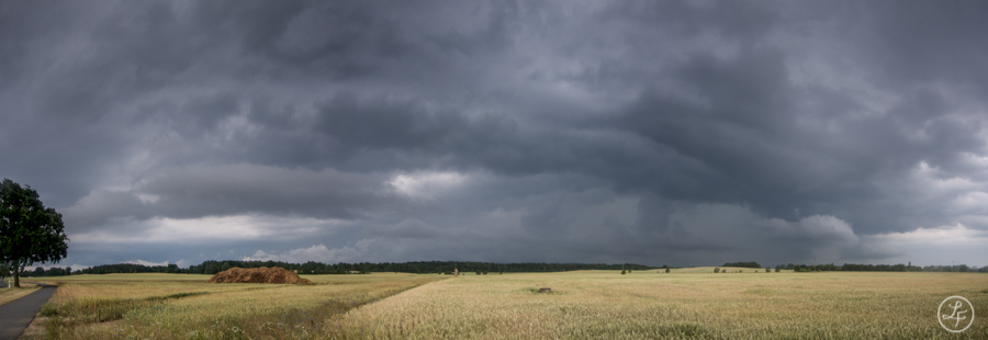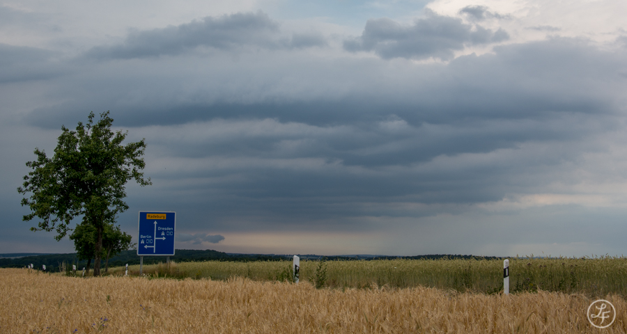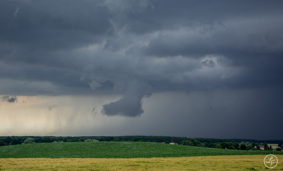 Wir fuhren noch ein kleines Stück nordwärts, um uns erneut vor dem Südende zu platzieren, und hielten diesmal bei Ortrand. Strukturell hatte die Zelle aber wohl ihren Zenit schon überschritten. Dennoch blieben wir hier eine Weile zum Fotografieren.