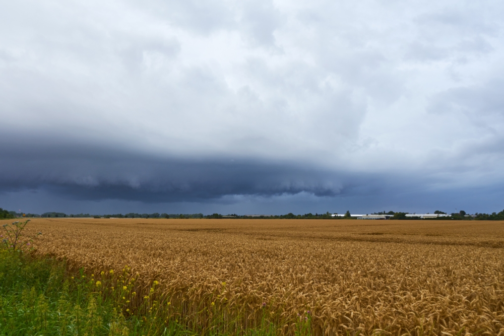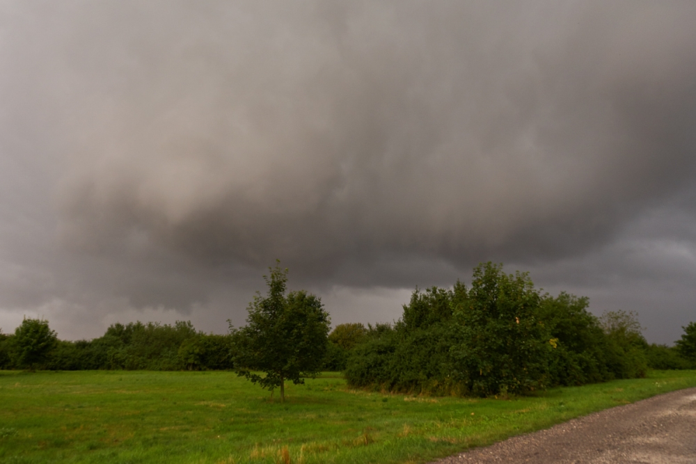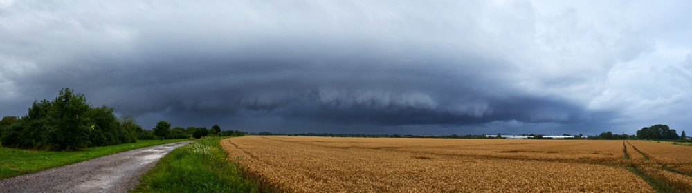 am Mittwoch, dem 12.07., konnte ich den fotogenen Aufzug einer Kaltfront bei Lützen und Naunhof in der Nähe von Leipzig bestaunen. Zunächst durchfuhr ich einige herbstlich anmutende Schwachregenschauer unter ziemlich bedecktem Himmel. Lediglich der Taupunkt fühlte sich einigermaßen sommerlich an. Umso gedämpfter waren meine Erwartungen, als ich in Lützen ankam und nach Westen blickte.