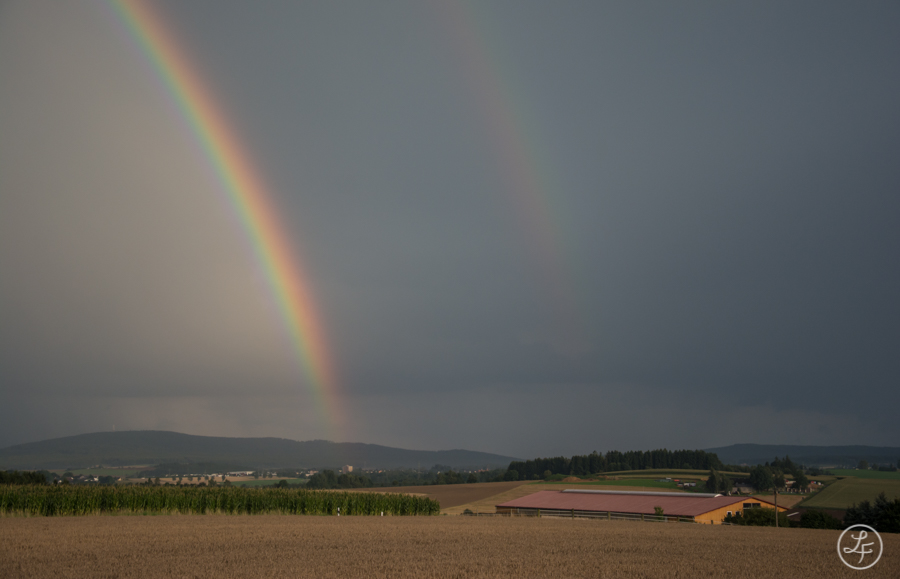 Stephan hatte nun einen bestimmten Standort bei Oberkotzau im Blick. Auf dem Weg dahin hielten wir noch ein paar Mal, um diese Regenbögen festzuhalten.