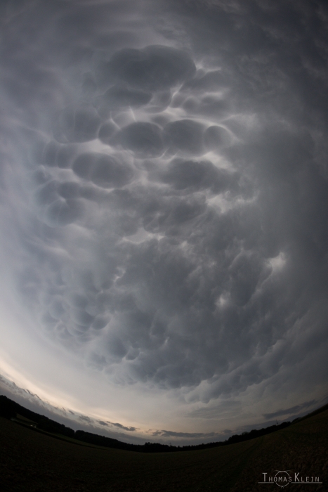 17:40 Uhr, der halbe Himmel war mit Mammatus überzogen, Fisheye aufnahme mit 8mm (180° Bilddiagonale):
