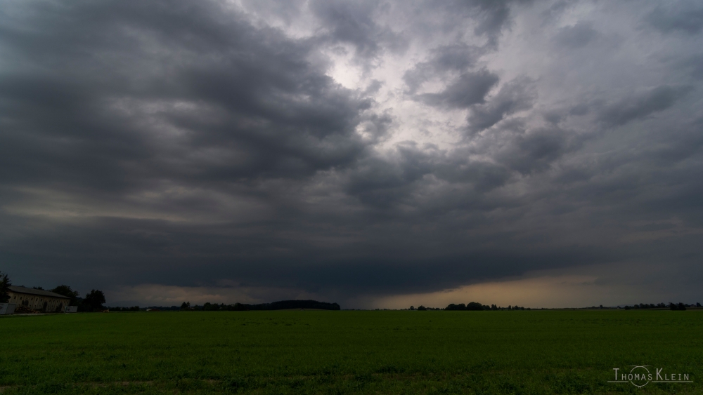 An dieser Stelle zeige ich euch ein Zeitraffer. Sehr schön ist die Entstehung der Wallcloud mit Tailcloud zu sehen sowie das Ansaugen der warmen Luft auf der rechten Seite. Außerdem kann man erkennen, dass die generel Zugrichtung der Wolken vor dem Gewitter Nordost war, das Gewitter selbst aber nach Osten zog: