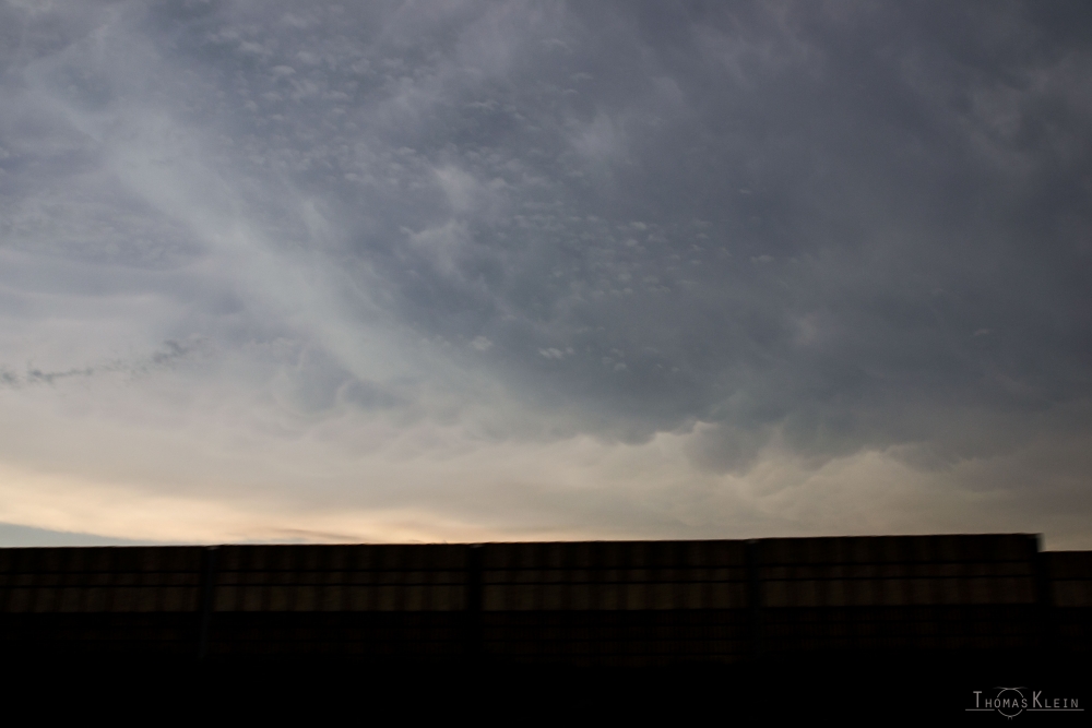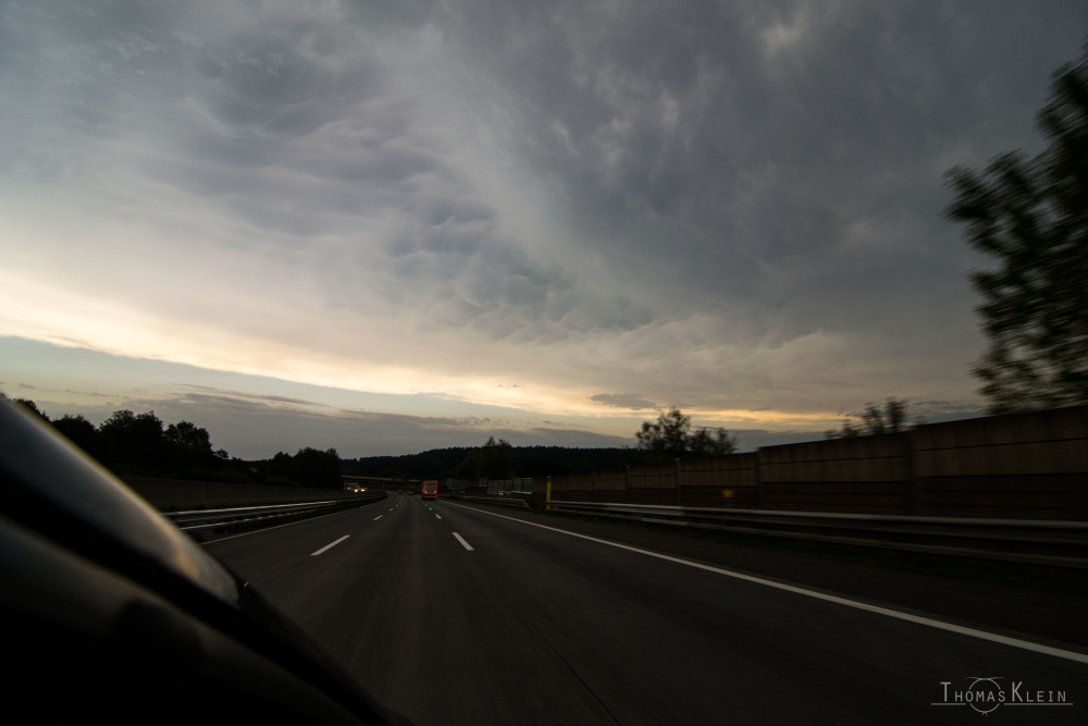 Leider hat auch diese Zelle nach rechts ausgeschert, sodass sie nicht aus den Alpen herausgekommen ist. Wir haben es noch an die nordost Seite geschafft, allerdings war die Position suboptimal und die Sicht miserabel. Ganz umsonst war es aber nicht, denn als wir auf der Autobahn vor die Zelle gekommen sind, hat sich uns mein persönliches Highlight der Tour gezeigt! Mammatus wie aus dem Lehrbuch!