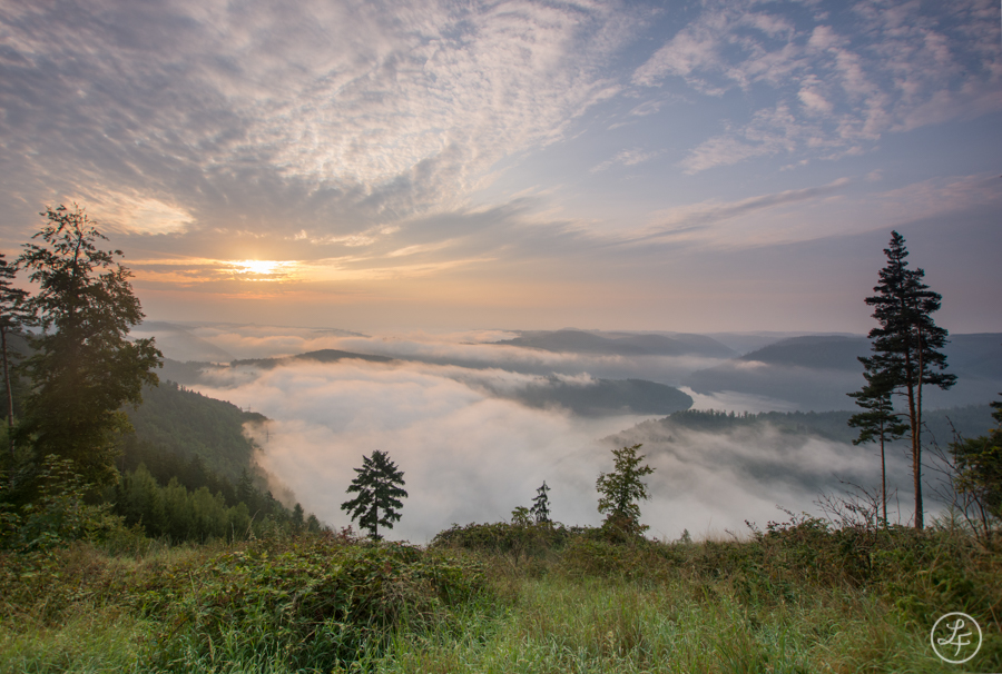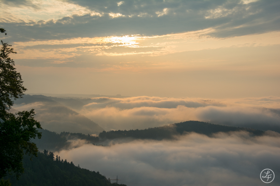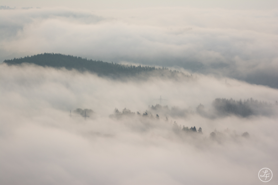 Viel Dynamik im Nebel sorgte für immer neue Motivmöglichkeiten. Mal verzog er sich tief ins Tal, mal schwappte er auch über die umgebenden Hügel und hüllte diese teilweise oder vollständig ein.