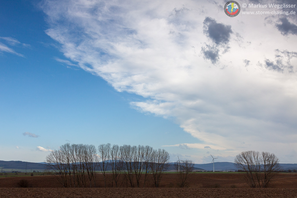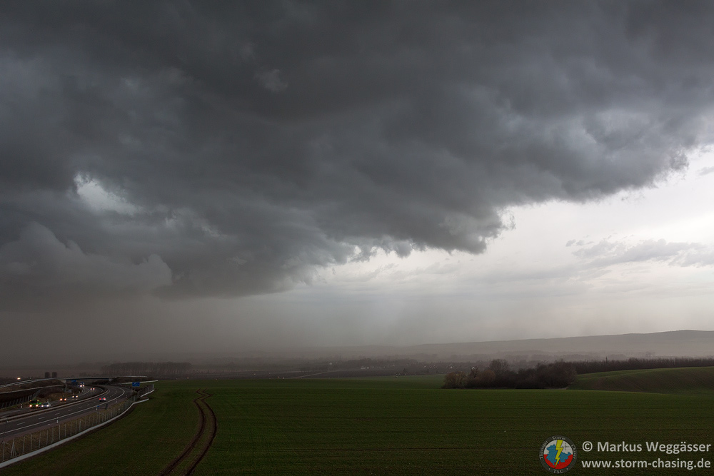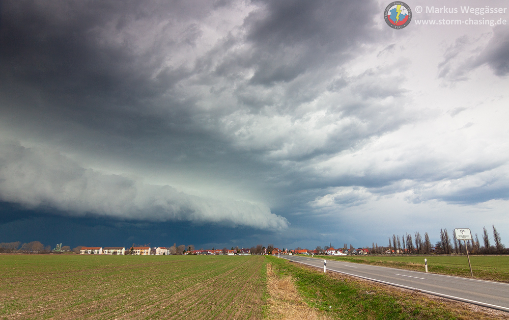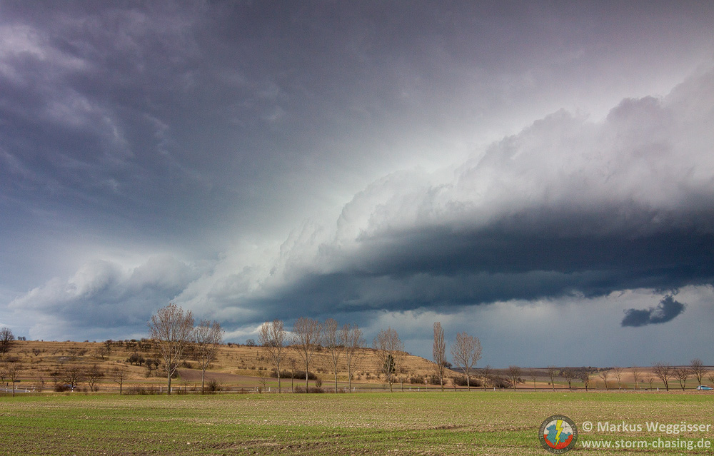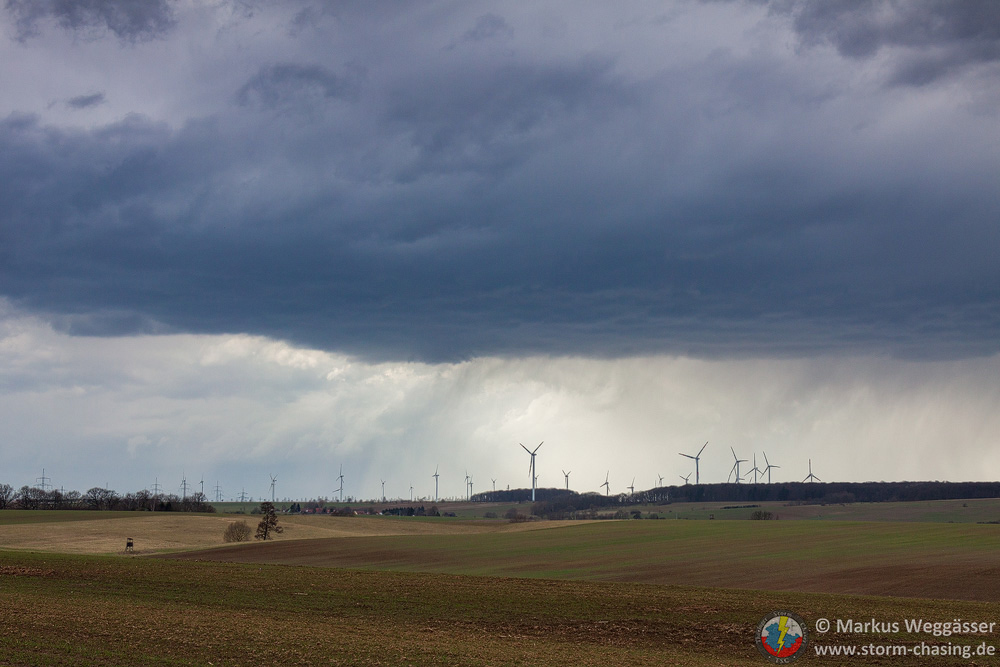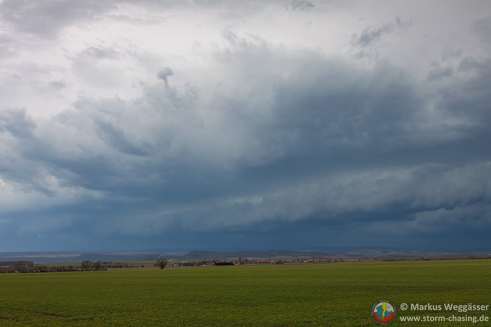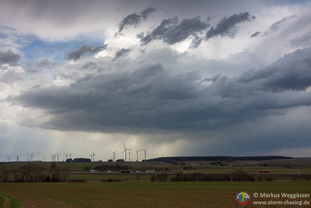 Wir waren auch in Gotha nochmal abgefahren, als hinter den Hügeln des Thüringer Waldes die [definition=17,0]Böenwalze[/definition] die ersten Zähne zeigte. Hier aber schnell wieder Weiterfahrt nach Osten zum Beobachtungspunkt bei Gamstädt, westlich der AS Bindersleben. Die [definition=17,0]Böenwalze[/definition] war nun deutlich zu sehen. Der stärkere Teil lag Richtung Westen/Nordwesten. Sömmerda als nächste und auch letzte Option wurde in Betracht gezogen.