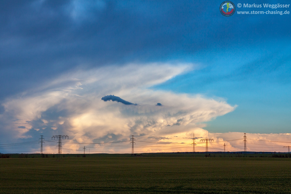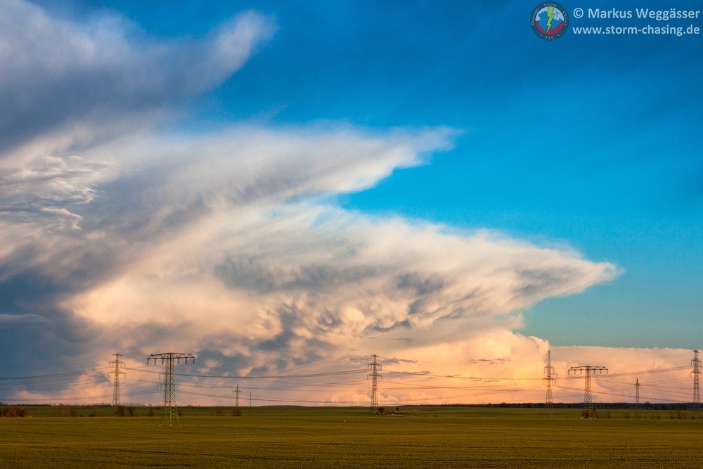 Noch eindrucksvoller die [definition=22,0]Cb[/definition] der Gewitter in Ost- und Südostthüringen, die im Abendlicht immer eindrucksvoller wirkten und prächtige Mammati präsentierten: