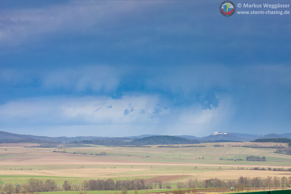 ...und wir wieder zurück nach Osten um am Erfurter Kreuz Stellung zu beziehen. Eine weitere Gewitterzelle aus Süden tauchte hinter der Wartburg auf. Das haben wir vom Autobahn-Parkplatz nochmal schnell festgehalten: