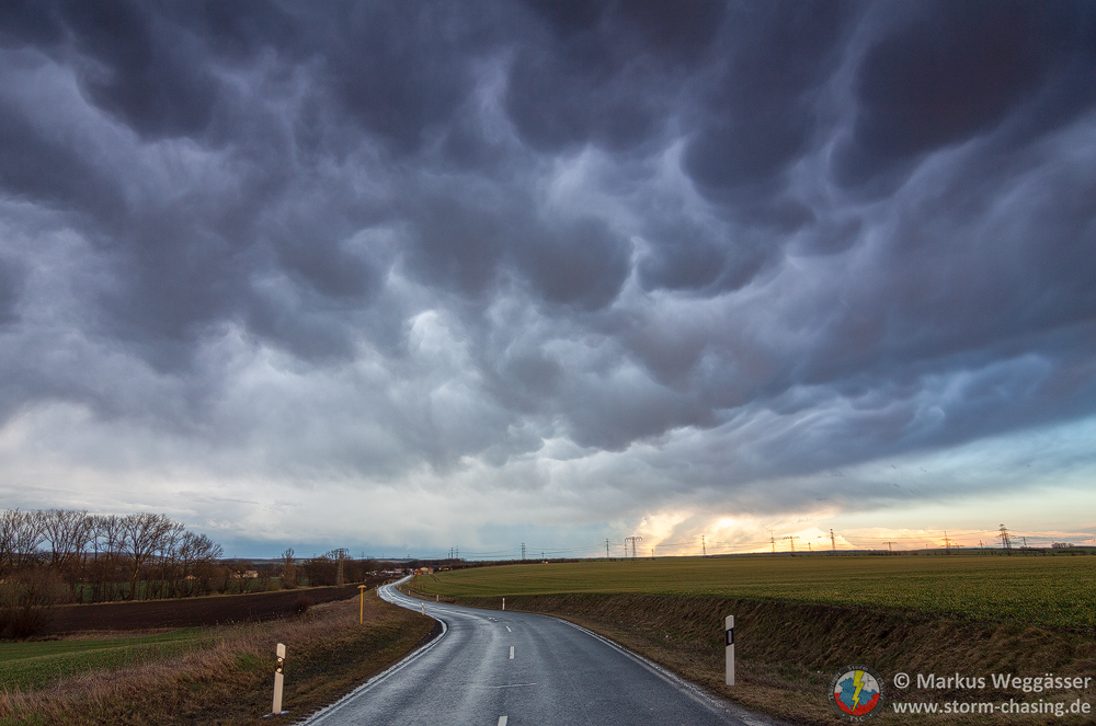 Danach fuhren wir wieder südwärts und kamen bei Erfurt schon unter die ersten Mammati. Bei Eischleben warteten wir darauf, dass die Sonne zum Vorschein kommt. Schon jetzt tolle Exemplare über uns: