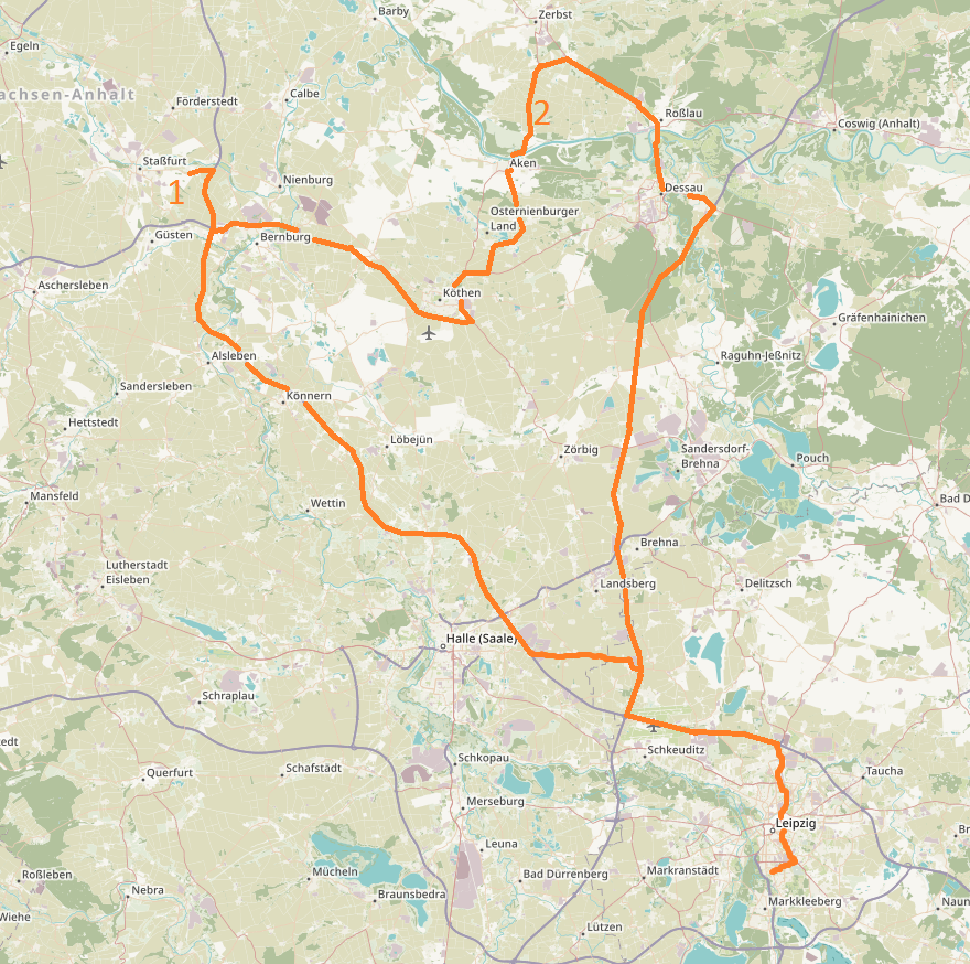 Zurück ging es Dann über Dessau-Roßlau und die A9. Tagesstrecke: 270 Kilometer.
