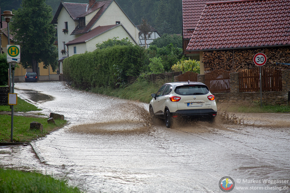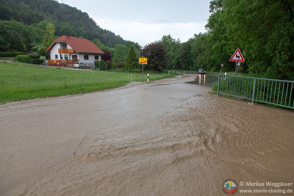 Die Tiefdruckrinne nebst [definition=57,0]Konvergenz[/definition] vom Vortag dehnt sich wieder südwärts aus. Im Tagesverlauf wird dabei ein Bodentief über der Mitte Deutschlands initiiert. Hoher Energiegehalt (1.000 - 1.500 J/kg, teils mehr) + ausfällbarer Niederschlag (30-35 mm) bei langsamer Zuggeschwindigkeit lassen zu Beginn Einzel-, dann Multizellen und im Verlauf Cluster entstehen. Die Details wie räumliche Eingrenzung und zeitlicher Ablauf können nur sehr kurzfristig eingegrenzt werden. Plausibel sind ab den Mittagsstunden Entwicklungen über dem Bergland, die im Verlauf auch mehr in das Vorland übergreifen (damit ist nicht nur das Vorland nördlich, sondern auch südlich des Thüringer Waldes/Schiefergebirges gemeint). Auch über Rhön, Erzi und Harz natürlich bevorzugt Aulöse. Die Gewitter/-reste können bis in die Nacht hinein anhalten und schwächen sich zögerlich ab.