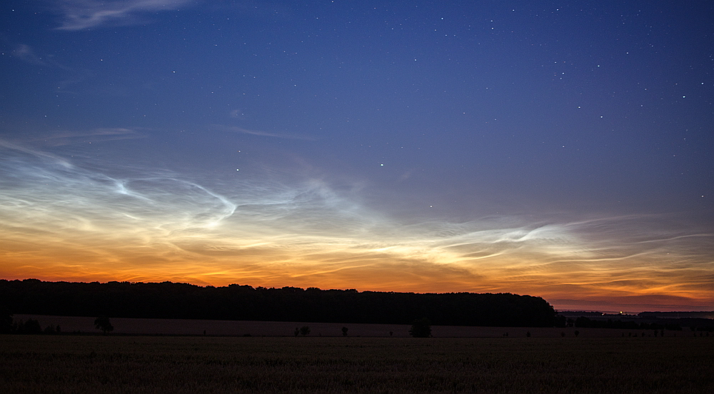 hier aus aktuellem Anlass noch ein Bericht vom 3+4.7.2014, als ich bei Döbritschen schöne nachtleuchtende Wolken beobachten konnte.