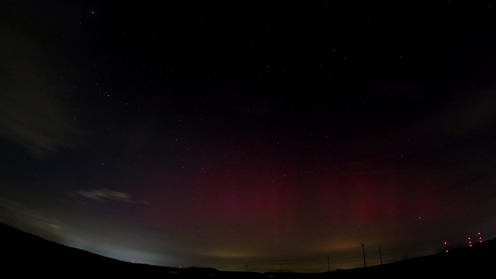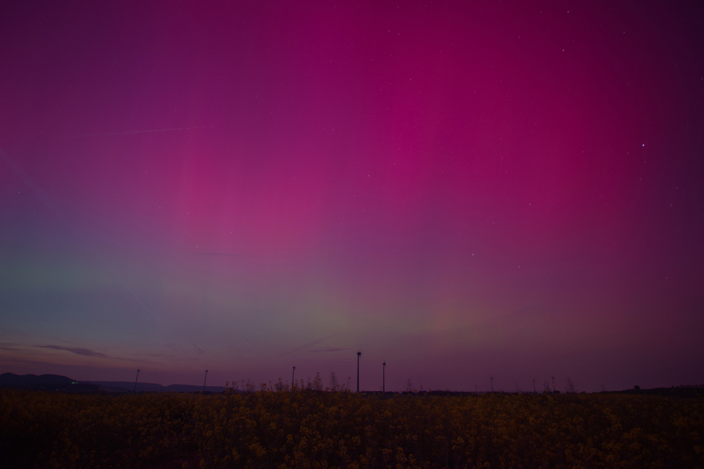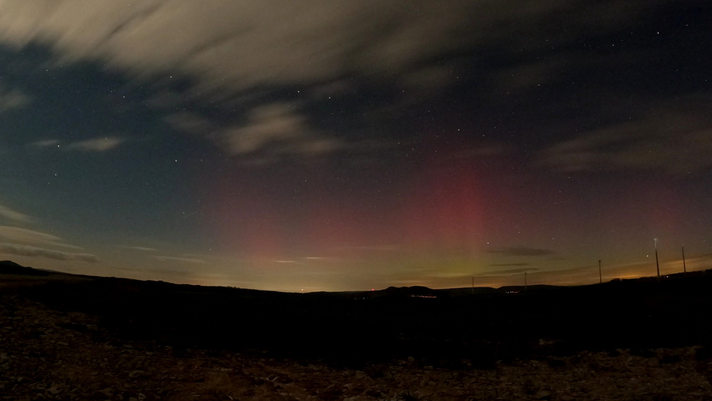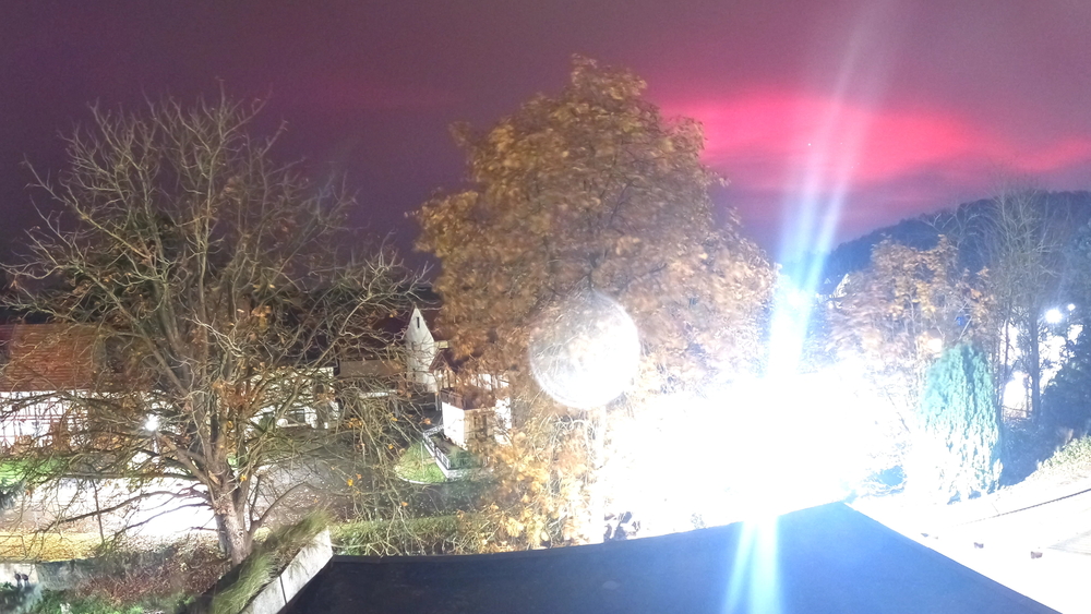 Foto gegen 23:30. Zwischenzeitlich war es schwach visuell sichtbar.