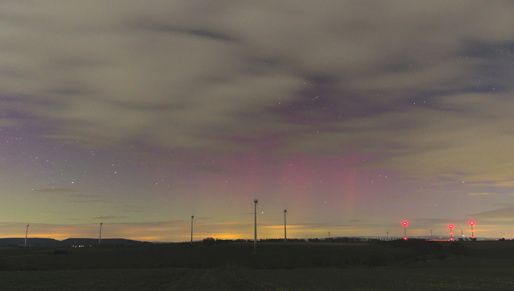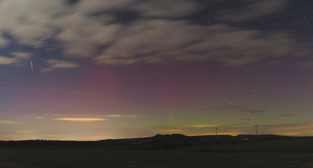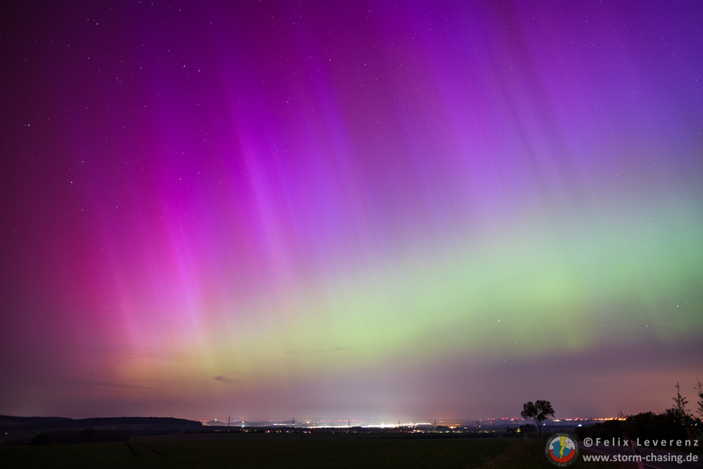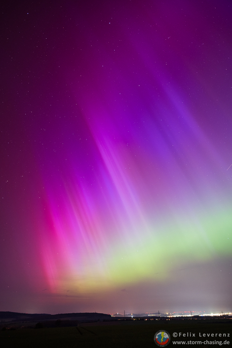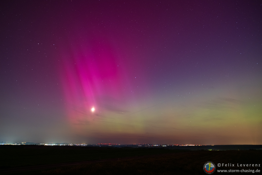 wie auf Kohlen sitzend beobachtete ich von Leipzig aus online das Geschehen und nutze zusammen mit ein paar weiteren Leipzigern die Möglichkeit auf Wolkenlücken in Thüringen. So fuhren wir in meine Heimat nach Bucha und positionierten uns bei Zimmritz. Entgegen der Lichtstreuung von Wolken & einem Gewerbegebiet konnten teilweise deutlich rote und grüne Farben wahrgenommen werden.
