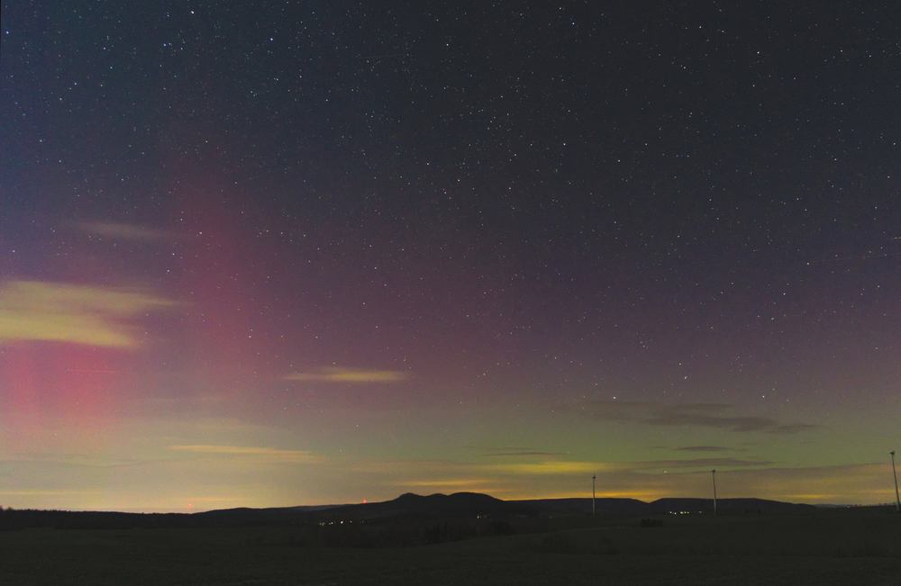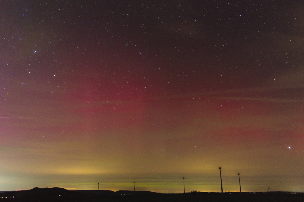 Gegen 23 Uhr Blick von Bösleben Richtung Erfurt / Arnstadt. Der Eindruck zu diesem Zeitpunkt war eigentlich schon überwältigend, da ich selbst eine solch starke Ausbreitung / Sichtbarkeit noch nicht erlebt habe.