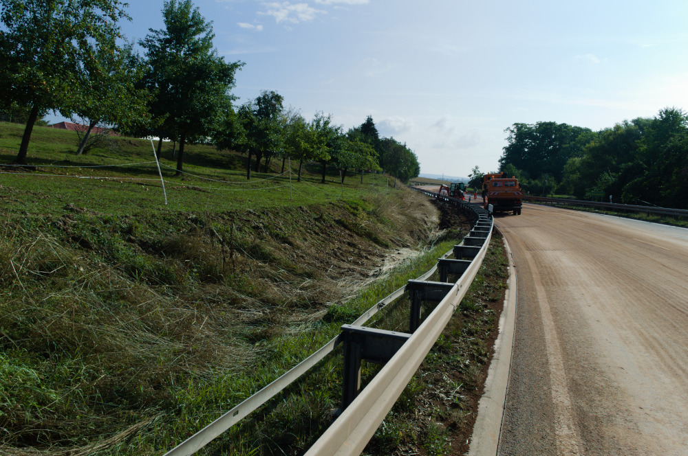 Hier wurde ebenfalls in einer Senke die Fahrbahn überflutet.