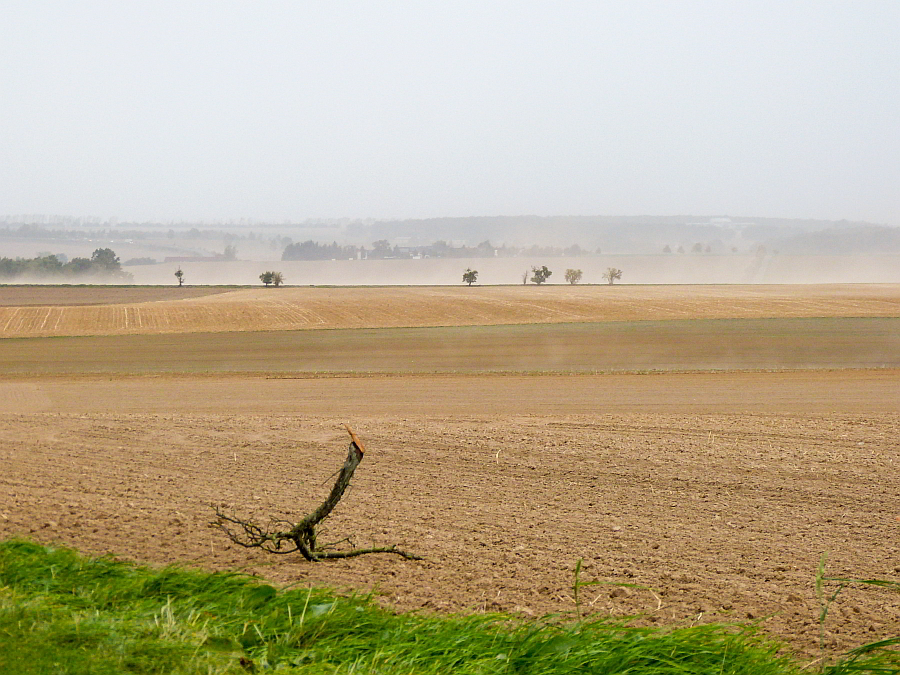 Heute Nachmittag Durchgang einer Kaltfront mit Böen zw. 70 und 85 km/h aus Südwest/später mehr aus West, im Bergland, dessen Lee und mit der Kaltfront auch einzelne stärkere Böen bis/über 90 km/h möglich. Die Kaltfront ist nur mit wenig Niederschlag verbunden. Gewitter sind vorlaufend oder eingelagert gering wahrscheinlich. Möglicherweise können sich nach Osten hin (Sachsen, besonders Rtg. Erzgebirge) Gewitter noch besser entwickeln. Der Wind dürfte außerdem wieder für Staubaufwirbelungen und Sichteinschränkungen sorgen. Auch sind viele Bäume noch belaubt und können dadurch besser umgeworfen werden.