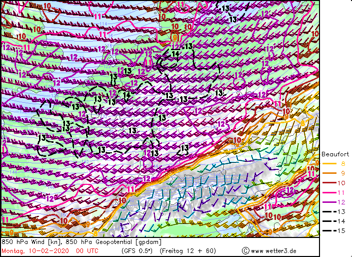 850 hPa-Wind: