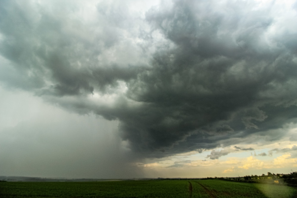 Wir verlagerten uns ein weiteres mal in Richtung Osten und beobachteten weiter. Wir dachten, der Komplex schwächt sich weiter ab, da er auch zunehmend verclusterte. Doch dann entwickelte sich direkt vor uns ein netter Niederschlagskern: