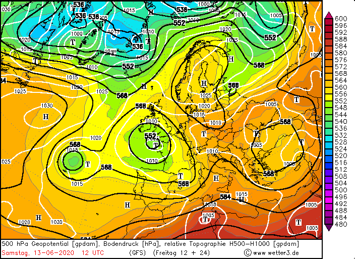500 hPa Geopotential-Höhenwetterkarte dazu:
