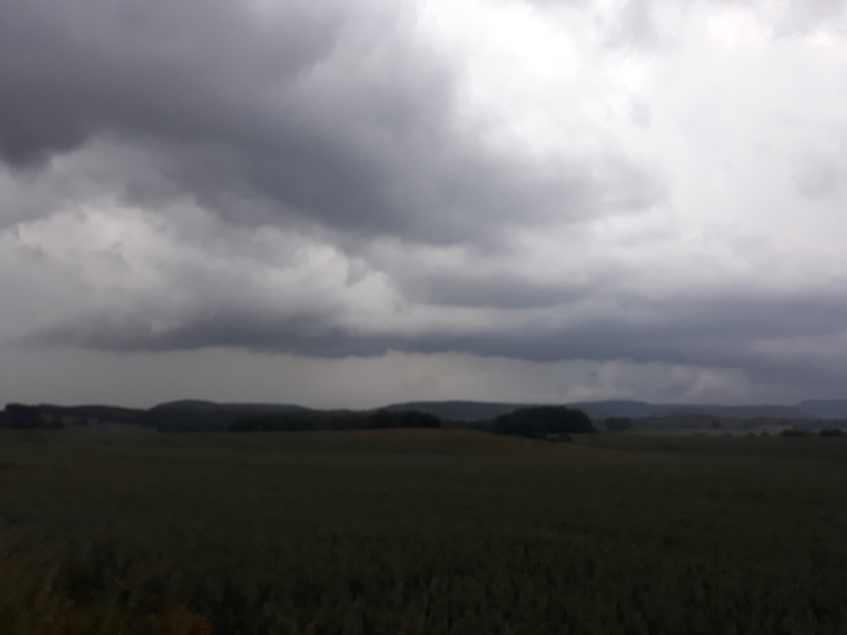 Es hatte schon ordentlich geregnet und ich war schon auf dem Sprung ins Auto. Hab mich aber noch ein letztes mal umgeschaut und mir viel noch dieses Gebilde ins Auge. Blickrichtung Norden. Muss nichts besonderes sein, hab es nur zu Dokuzwecken festgehalten. Rotation war augenscheinlich nicht zu erkennen, Im Radarsweep war zwar ein kleiner grüner Punkt (knapp unter Gleichen Gemeinde), aber das würde ich jetzt nicht als Indiz deuten.