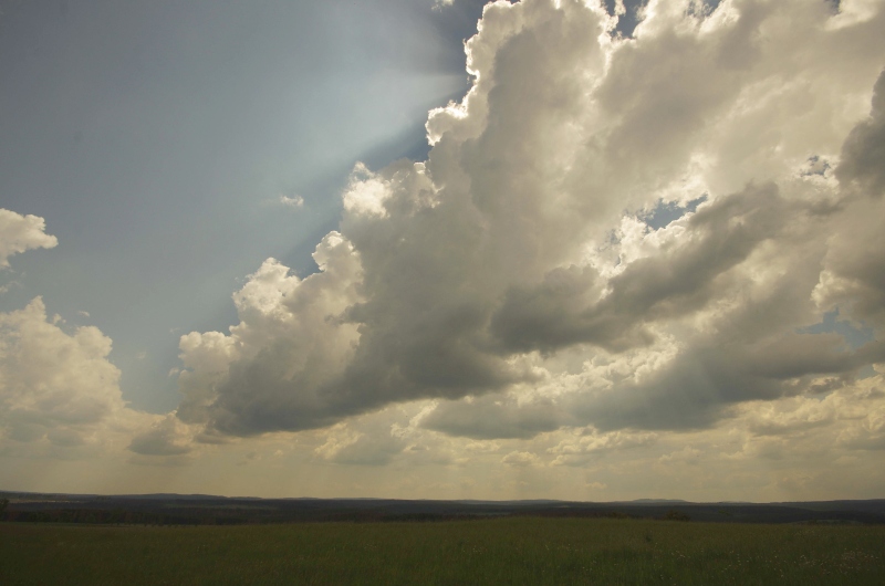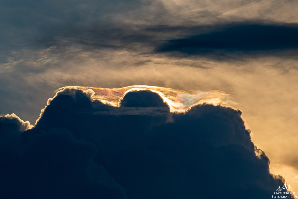 Das Erzgebirge blieb ja verschont mit Gewittern. Nichtsdestotrotz bildeten sich am 13. einige Cumuluswolken, einige auch mit Pileus. Einer davon befand sich nah an der Sonne und fing an zu irisieren. Das hielt sich einige Minuten und sah wirklich klasse aus: