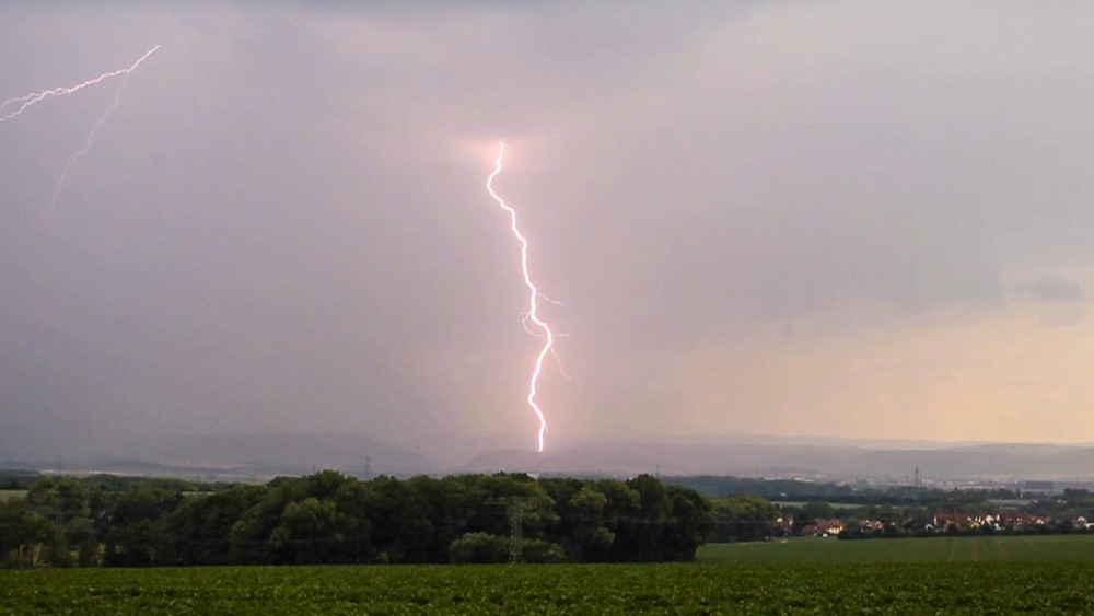 Die Donner wurden lauter, erste Blitze waren zu sehen. Eine gewisse Euphorie breitete sich aus und so standen wir vor der Zelle und ließen die Zelle immer näher kommen, bis schlussendlich etwa 1km vor uns ein Blitz einschlug. Unter anderem diesen 4-Schlag bekamen wir zu Gesicht: